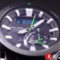 Модель с зелёными деталями отражает спортивный стиль и выигрышно смотрится на запястье. Ударопрочный корпусУдаропрочный корпусМеханизм заключён в корпус, выполненный из современных материалов, устойчивых к ударам, механическим повреждениям и падению с высоты: инновационный пластик, карбон, нержавеющая сталь, титан. выполнен из пластика и стали 316L с IP-покрытиемIP-покрытиеМетод ионного напыления. Демонстрирует повышенную устойчивость к истиранию, окислению и химическим веществам. Под воздействием высокого давления и температуры около 1500°C молекулы металла надёжно соединяются с частицами корпуса часов., что делает его устойчивым к различным видам повреждений. Наручные часы с японским кварцевым механизмом работают от солнечной батареи , функция сохранения энергии увеличивает срок работы часов без подзарядки до 21 месяца. Сапфировое стекло с покрытием «антиблик». Двойная светодиодная подсветкаСветодиодная подсветкаСветодиодная или LED-подсветка обеспечивает появление яркого холодного свечения за счёт LED-элементов - маленьких лампочек. Они потребляют минимальное количество энергии, чаще всего можно встретить 1 светодиод, в нижней части циферблата.. Водостойкость 20 бар. Устойчивость к температуре ниже -10°C. Коррекция времени радиосигналом, барометр, лунный календарь, высотомер, таймер, график восхода и заката солнца, датчик приливов и отливов, мировое времяМировое время Полезное часовое усложнение, отображающее время в основных городах и известных областях по всему миру, оно связано с часовыми поясами, удобно для путешественников и бизнесменов. – 31 часовой пояс, календарь, хронографХронографФункция позволяет измерять отрезки времени с особой точностью: часы, минуты, секунды. Верным признаком хронографа является наличие на циферблате 3 дополнительных окошек-счётчиков.. Таймер рыбалки подсказывает, какое время оптимально подходит для ловли рыбы. Габариты: 58,7 x 52,3 x 14,5 мм.