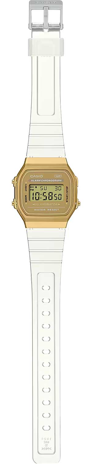 Спортивные японские мужские часы с секундомеромСекундомерСекундоме́р — прибор, способный измерять интервалы времени с точностью до долей секунды. Casio Vintage A168XES-1BEF, кварцевый механизм с высокой точностью. Издавая звуковой сигнал в установленное время, будильникБудильникБуди́льник — часы, в заданный момент времени подающие звуковой, световой и/или в редких случаях другой сигнал. напоминает о событиях, которые повторяются каждый день. Корпус из полимерного пластика. Класс водозащиты: 30 метров, позволит защитить корпус от случайных брызг или капель дождя. Ремешок с классической застежкой.
