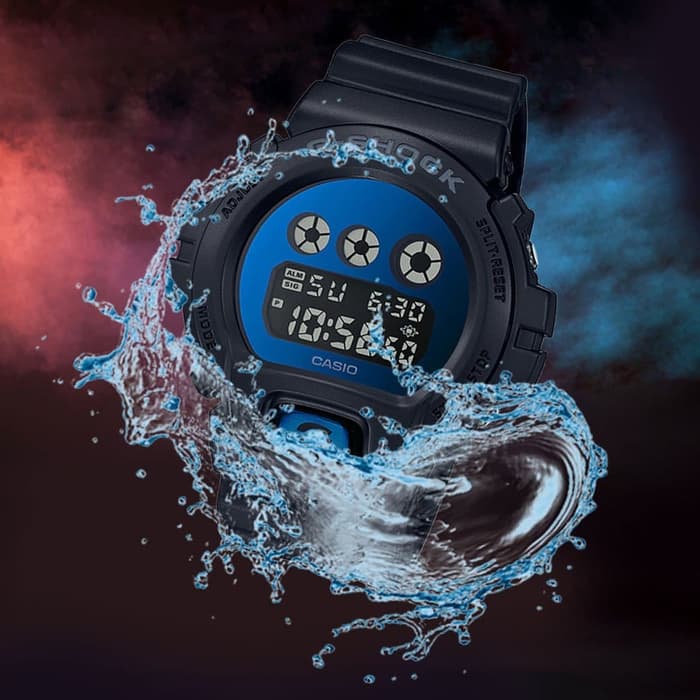 Мужские японские противоударные часы с хронографом Casio G-Shock DW-6900MMA-2E, электронный механизм с высокой точностью. Класс водозащиты: 200 метров, позволит плавать, нырять и заниматься другими водными видами спорта. Корпус часов изготовлен из пластика, черного цвета.