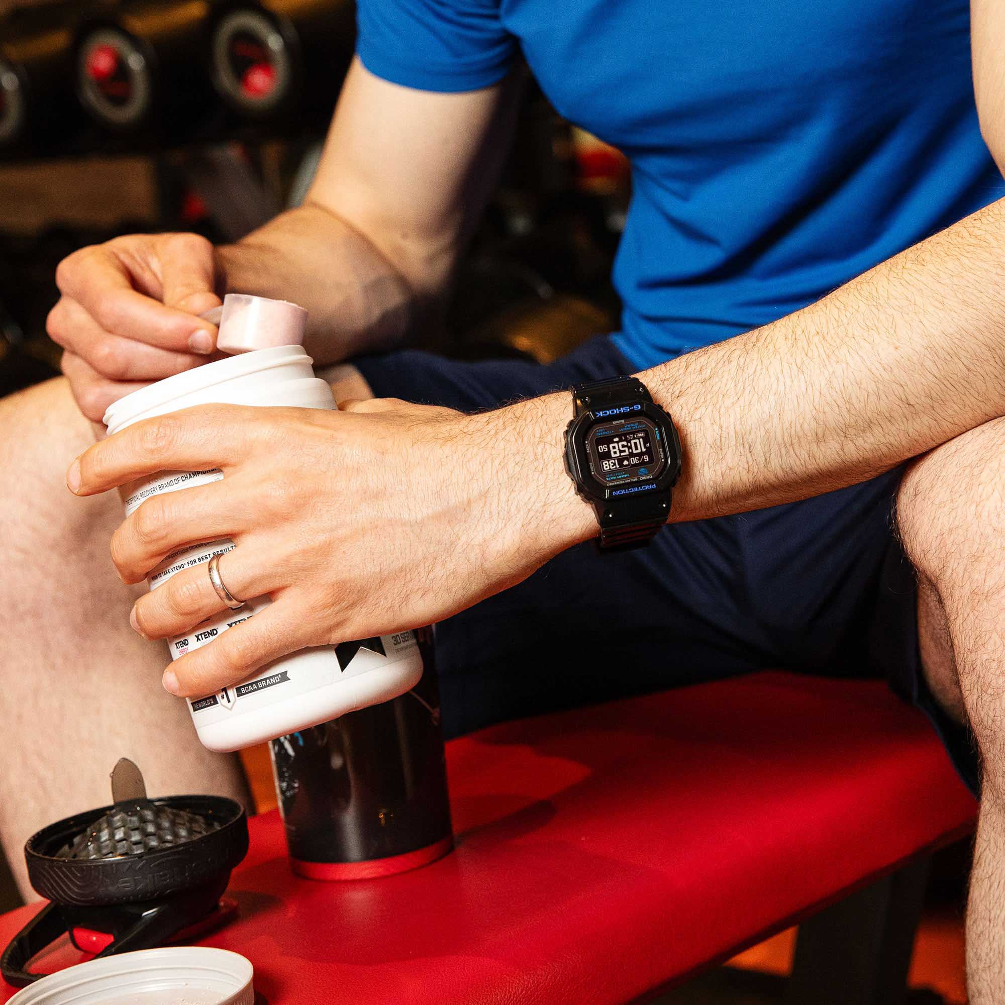 Ваши тренировки выйдут на новый уровень благодаря этой современной новинке от Casio. Японские спортивные наручные часы в серии G-SQUAD из биопластика Casio G-Shock DW-H5600-1A2DR (DW-H5600-1A2), кварцевый механизм с высокой точностью. Класс водозащиты: 200 метров, позволит плавать, нырять и заниматься другими водными видами спорта. Корпус часов изготовлен из пластика. Мдель в серии G-SQUAD выполнена из биопластика, который изготавливается из возобновляемых органических ресурсов. Мультиспортивный профили: бег, ходьба, езда на велосипеде и др. Питание от солнечной энергии Tough SolarTough SolarТехнология основана на подзарядке аккумулятора от источника солнечного света, специальная панель улавливает солнечные лучи и преобразует их в энергию для работы часов. Достаточно пары минут нахождения на солнце для функционирования часов в течении суток. - солнечные батарейки большой мощности, индикатор заряда батареи. Функция автоматического сохранения энергии. Время работы аккумулятора без подзарядки: 35ч, 1 месяц (без использования пульсометра), при включенной функции сохранения энергии до 11 месяцев. Возможность зарядки через специальный кабель с разъемом USB типа A. Ударопрочный корпусУдаропрочный корпусМеханизм заключён в корпус, выполненный из современных материалов, устойчивых к ударам, механическим повреждениям и падению с высоты: инновационный пластик, карбон, нержавеющая сталь, титан. защищает механизм от ударов и вибрации. Циферблат подсвечивается светодиодомСветодиодная подсветкаСветодиодная или LED-подсветка обеспечивает появление яркого холодного свечения за счёт LED-элементов - маленьких лампочек. Они потребляют минимальное количество энергии, чаще всего можно встретить 1 светодиод, в нижней части циферблата., функция автоподсветки освещает циферблат при повороте часов к лицу. Настраиваемое послесвечение 1,5 или 3сек. Цвет подсветки: белый. Дисплей mip LCD позволяет легко считывать данные даже в темноте. 12-ти и 24-х часовой формат времени. СекундомерСекундомерСекундоме́р — прибор, способный измерять интервалы времени с точностью до долей секунды. с точностью показаний 1с и временем измерения 100ч. Сплит-хронографСплит-хронографИспользуется для измерения продолжительности нескольких временных отрезков, начинающихся одновременно, а заканчивающихся в разное время.. ТаймерТаймерОтсчитывает секунды в обратном направлении в заданном интервале времени. обратного отсчета от 1сек до 1ч. Мировое времяМировое время Полезное часовое усложнение, отображающее время в основных городах и известных областях по всему миру, оно связано с часовыми поясами, удобно для путешественников и бизнесменов. – 38 городов (38 часовых поясов), всемирное координированное время (UTCUTCВсемирное кординационное время, не имеющее привязки к географическому положению Гринвича, основывается на атомном отсчёте времени. Регулировка времени осуществляется более точно, чем устаревшее GMT.