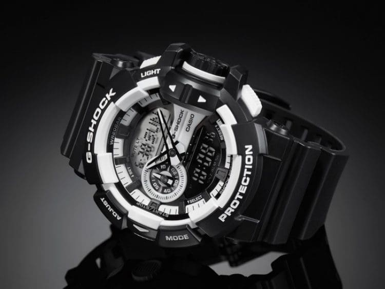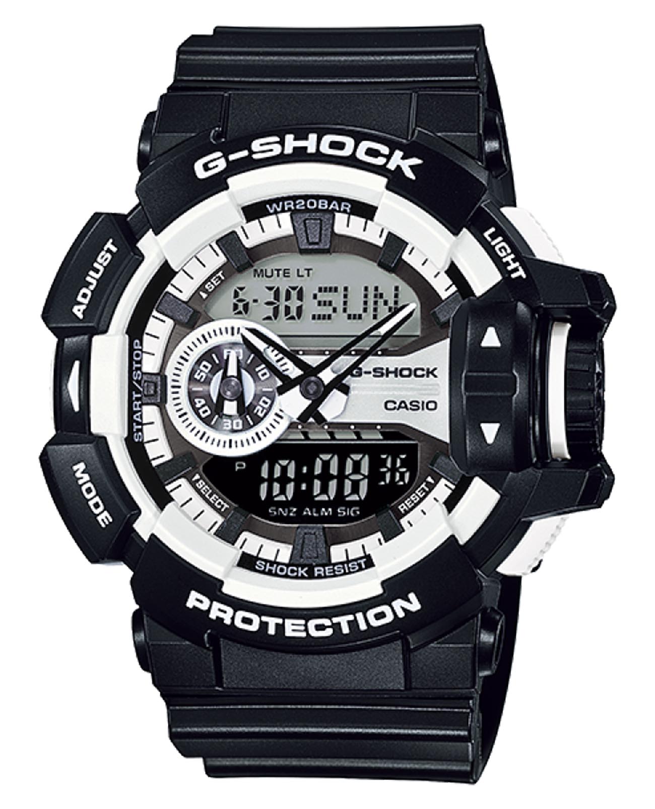 Противоударные, спортивные мужские часы Casio G-Shock GA-400CM-1A, электронный механизм с высокой точностью. Класс водозащиты: 200 метров, позволит плавать, нырять и заниматься другими водными видами спорта. Корпус часов изготовлен из пластика, разноцветного цвета.