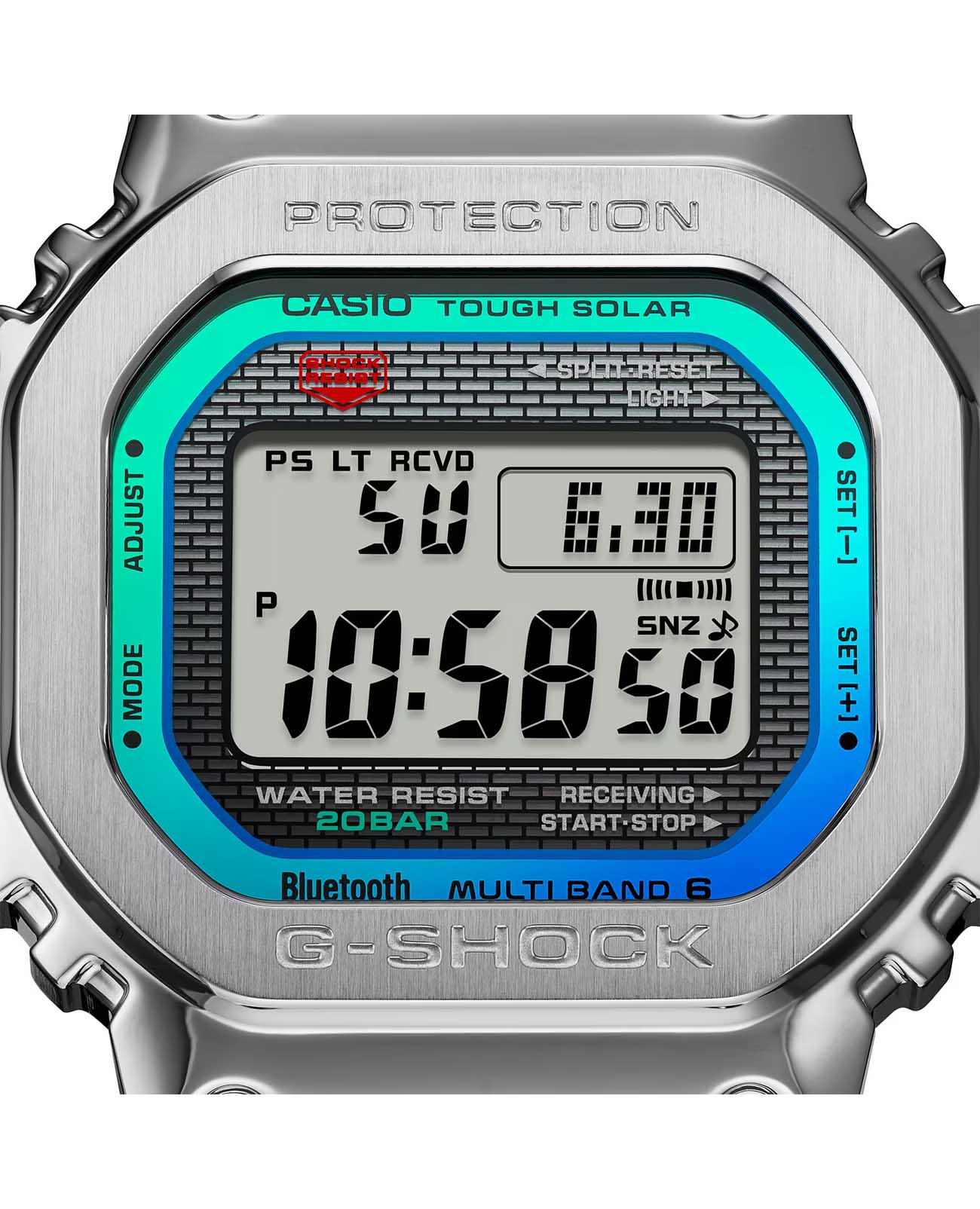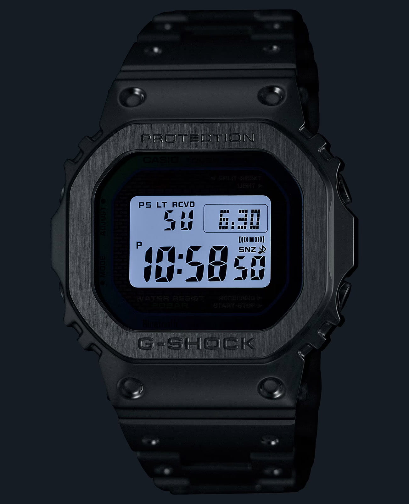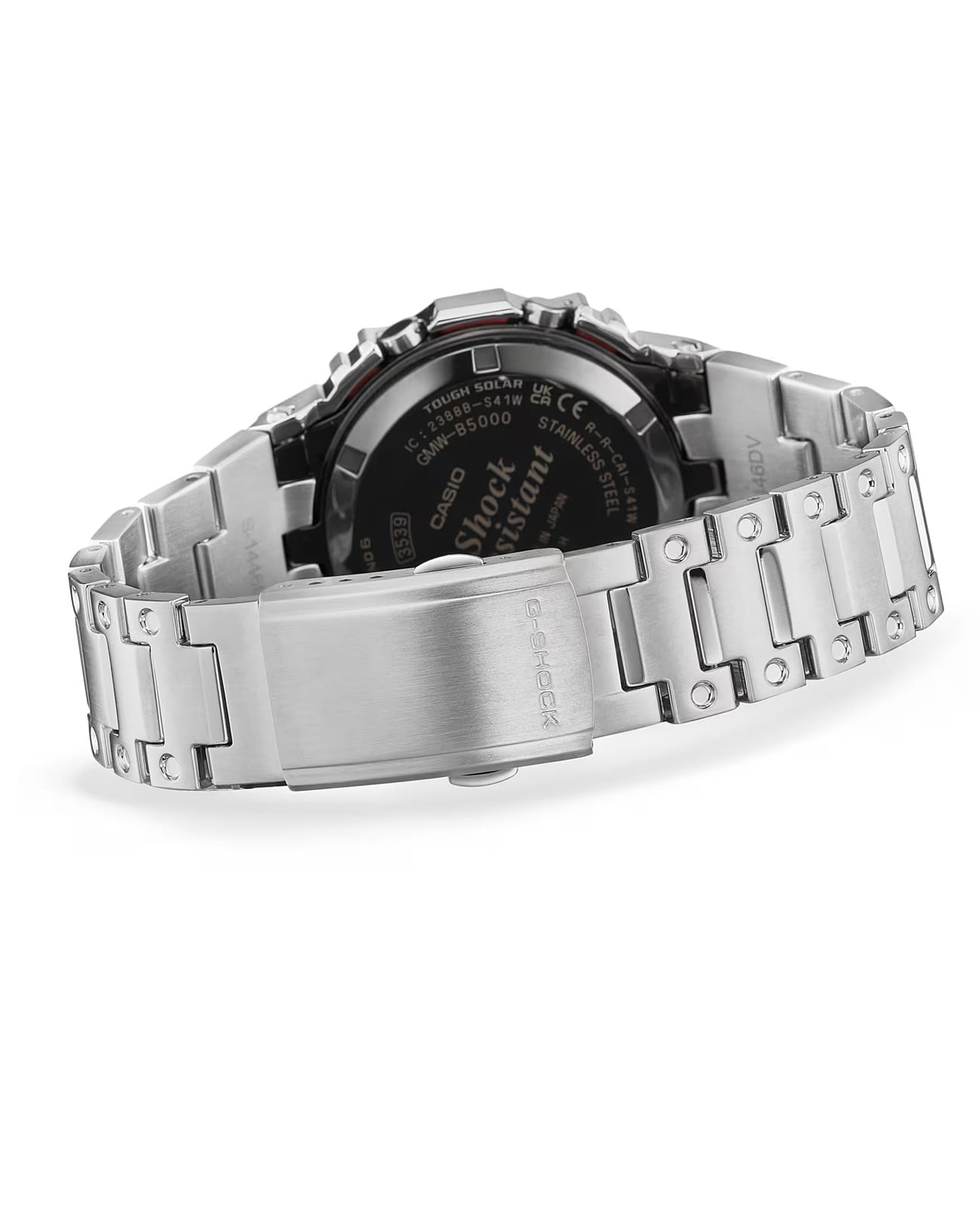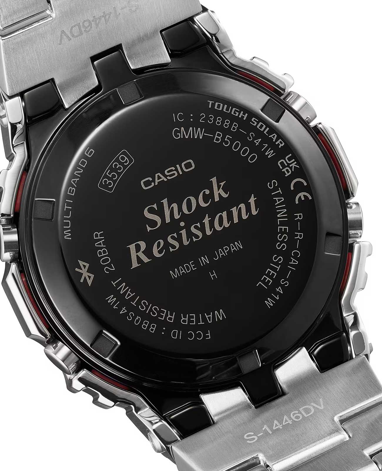 Японские мужские часы Casio G-Shock GMW-B5000PC-1. Минеральное стеклоМинеральное стеклоМинеральное стекло представляет собой искусственно выращенный минерал кварца. Такое стекло отличается особой устойчивостью к повреждениям и царапинам. Уступает по некоторым качествам сапфировому стеклу. устойчивое к появлению царапин, обладающее высокой прозрачностью. Ударопрочный корпусУдаропрочный корпусМеханизм заключён в корпус, выполненный из современных материалов, устойчивых к ударам, механическим повреждениям и падению с высоты: инновационный пластик, карбон, нержавеющая сталь, титан. и ремешок выполнены из нержавеющей стали с IP-покрытиемIP-покрытиеМетод ионного напыления. Демонстрирует повышенную устойчивость к истиранию, окислению и химическим веществам. Под воздействием высокого давления и температуры около 1500°C молекулы металла надёжно соединяются с частицами корпуса часов., обеспечивающий максимально высокий уровень защиты часов от механических повреждений. Tough SolarTough SolarТехнология основана на подзарядке аккумулятора от источника солнечного света, специальная панель улавливает солнечные лучи и преобразует их в энергию для работы часов. Достаточно пары минут нахождения на солнце для функционирования часов в течении суток.. Часы оснащены технологией BluetoothBluetoothСовременная технология, позволяющая синхронизировать часы с телефоном и переносить данные. Часы с Bluetooth расширяют возможности вашего смартфона и делают его использование ещё более удобным., которая предлагает энергосберегающую возможность передачи данных нажатием кнопки. С помощью Bluetooth вы можете подключить часы к смартфону, не используя провод, и получить доступ к целому ряду полезных функций. Если часы подключены к смартфону, время устанавливается автоматически. Мировое времяМировое время Полезное часовое усложнение, отображающее время в основных городах и известных областях по всему миру, оно связано с часовыми поясами, удобно для путешественников и бизнесменов. в 29 различных часовых поясах. БудильникБудильникБуди́льник — часы, в заданный момент времени подающие звуковой, световой и/или в редких случаях другой сигнал., секундомерСекундомерСекундоме́р — прибор, способный измерять интервалы времени с точностью до долей секунды., таймерТаймерОтсчитывает секунды в обратном направлении в заданном интервале времени. и функция поиска телефона. После нажатия на кнопку, ваш потерянный телефон издаст звуковой сигнал. Класс водозащиты: 200 метров, позволит плавать, нырять и заниматься другими водными видами спорта. Стальной браслет с IP-покрытиемIP-покрытиеМетод ионного напыления. Демонстрирует повышенную устойчивость к истиранию, окислению и химическим веществам. Под воздействием высокого давления и температуры около 1500°C молекулы металла надёжно соединяются с частицами корпуса часов. на раскладной застёжкеРаскладная застёжкаТакой тип застёжки используется только на браслетах из металла. Она никогда не раскрывается полностью, происходит разделение на 2 и более частей. Раскладывающая застёжка снизит вероятность потери часов к минимуму..