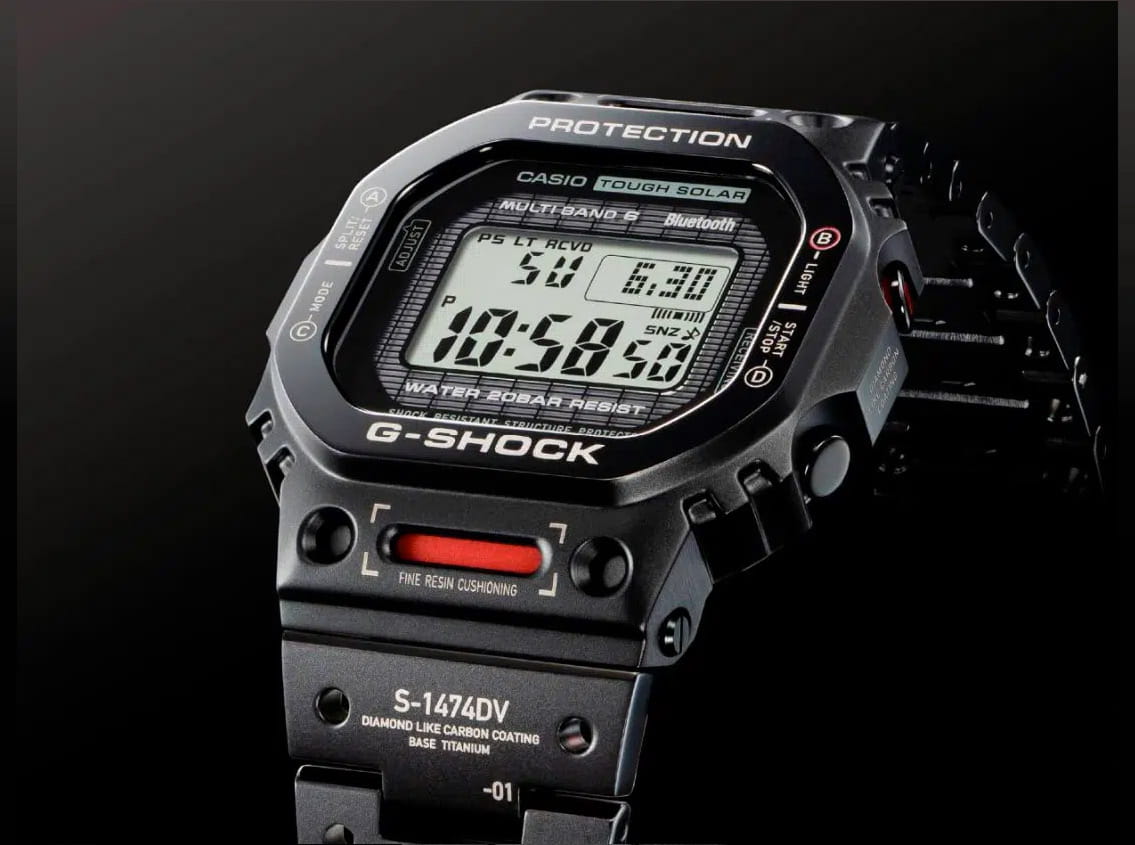 Мужские лимитированные японские противоударные часы из титана Casio G-Shock GMW-B5000TVA-1, электронный механизм с высокой точностью. Класс водозащиты: 200 метров, позволит плавать, нырять и заниматься другими водными видами спорта. Корпус часов изготовлен из стали, цвета.