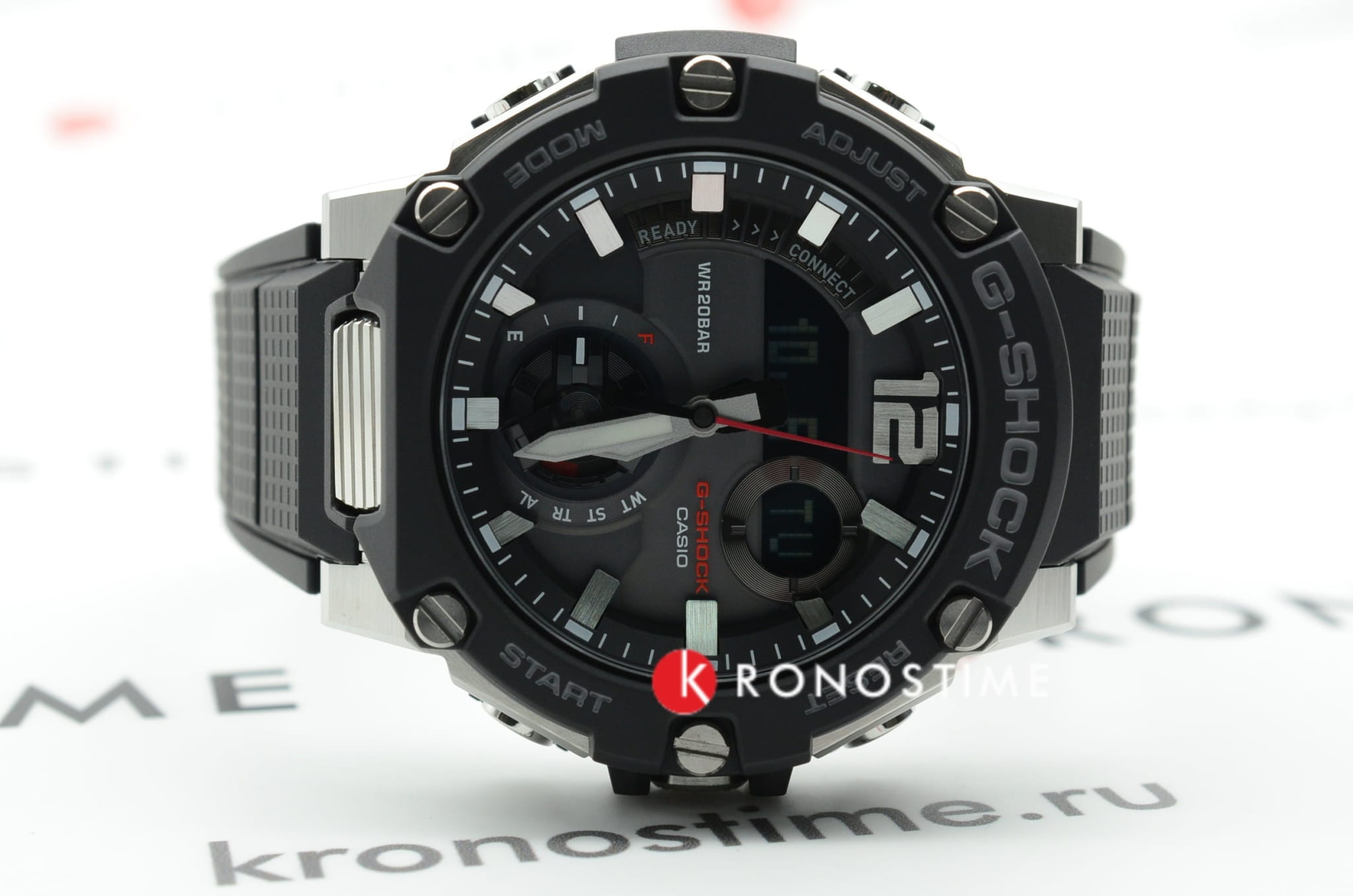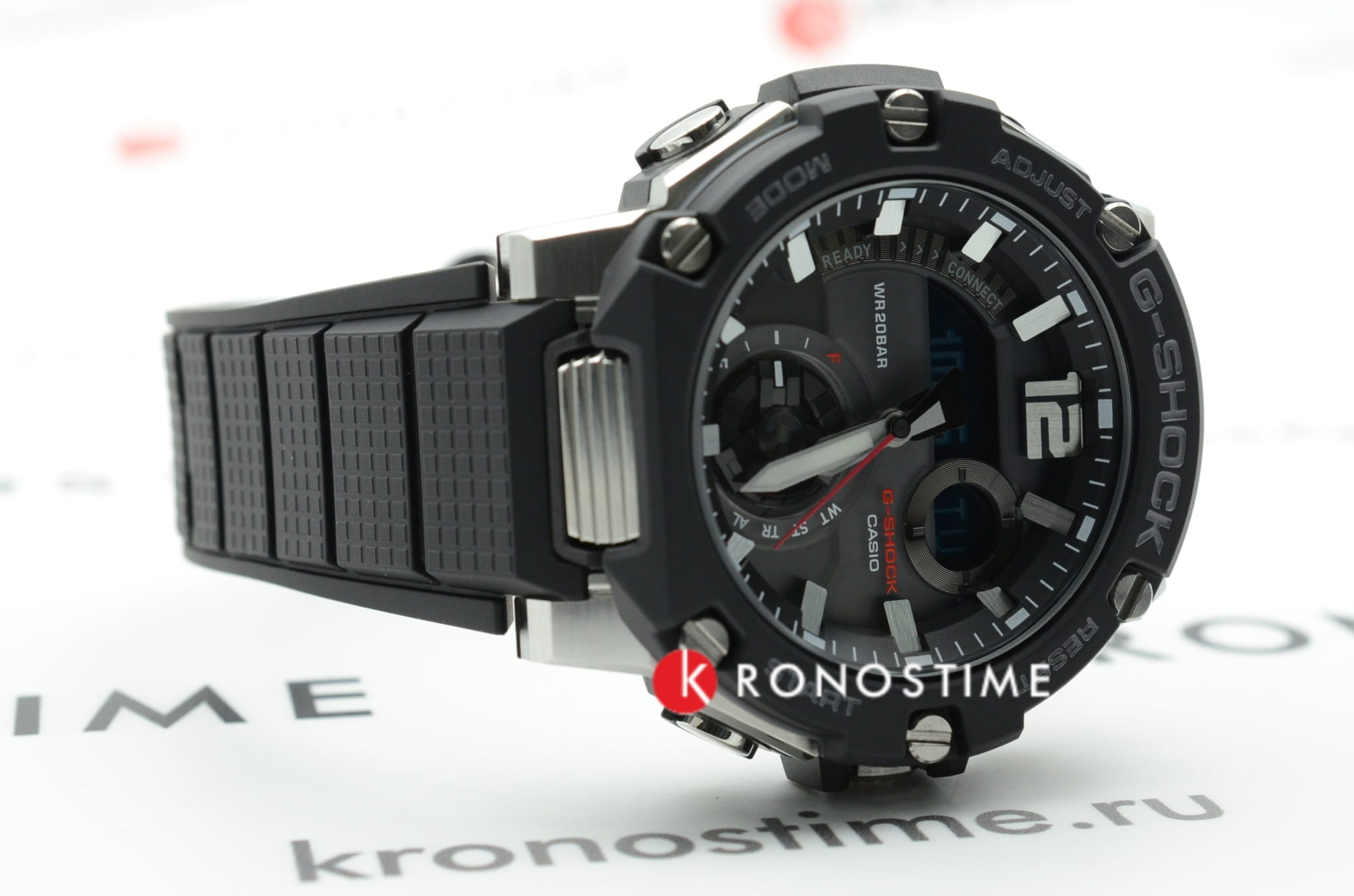 Корпус имеет структуру Carbon Core GuardCarbon Core Guard Новейшая структура корпуса, разработанная Casio. Полиуретановая пластина дополнительно усилена карбоновыми вставками, что придаёт специальную защиту от механических повреждений. Карбон отличается лёгкостью и прочностью., что говорит о повышенной ударопрочности. БезельБезельВнешний ободок, закрепляющий стекло. В спортивных часах так называется поворотное кольцо с делениями на циферблате, выполняет роль таймера – замеряет отрезки времени на шкале. Неподвижный безель – элемент декора. Однонаправленно вращающийся безель на дайверских часах позволяет фиксировать моменты погружения и выныривания на поверхность. изготовлен из стали 316L. Японский кварцевый механизм отличается высокой точностью хода 15 +/- секунд в месяц. Часы оснащены инновационной технологией , синхронизация со смартфоном происходит с помощью BluetoothBluetoothСовременная технология, позволяющая синхронизировать часы с телефоном и переносить данные. Часы с Bluetooth расширяют возможности вашего смартфона и делают его использование ещё более удобным.. Возможности: двойная автоматическая подсветка, мировое времяМировое время Полезное часовое усложнение, отображающее время в основных городах и известных областях по всему миру, оно связано с часовыми поясами, удобно для путешественников и бизнесменов. , будильник, хронографХронографФункция позволяет измерять отрезки времени с особой точностью: часы, минуты, секунды. Верным признаком хронографа является наличие на циферблате 3 дополнительных окошек-счётчиков., календарь, таймер.