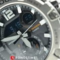 Корпус имеет структуру Carbon Core GuardCarbon Core Guard Новейшая структура корпуса, разработанная Casio. Полиуретановая пластина дополнительно усилена карбоновыми вставками, что придаёт специальную защиту от механических повреждений. Карбон отличается лёгкостью и прочностью., что говорит о повышенной ударопрочности. БезельБезельВнешний ободок, закрепляющий стекло. В спортивных часах так называется поворотное кольцо с делениями на циферблате, выполняет роль таймера – замеряет отрезки времени на шкале. Неподвижный безель – элемент декора. Однонаправленно вращающийся безель на дайверских часах позволяет фиксировать моменты погружения и выныривания на поверхность. изготовлен из стали 316L. Японский кварцевый механизм отличается высокой точностью хода 15 +/- секунд в месяц. Часы оснащены инновационной технологией , синхронизация со смартфоном происходит с помощью BluetoothBluetoothСовременная технология, позволяющая синхронизировать часы с телефоном и переносить данные. Часы с Bluetooth расширяют возможности вашего смартфона и делают его использование ещё более удобным.. Возможности: двойная автоматическая подсветка, мировое времяМировое время Полезное часовое усложнение, отображающее время в основных городах и известных областях по всему миру, оно связано с часовыми поясами, удобно для путешественников и бизнесменов. , будильник, хронографХронографФункция позволяет измерять отрезки времени с особой точностью: часы, минуты, секунды. Верным признаком хронографа является наличие на циферблате 3 дополнительных окошек-счётчиков., календарь, таймер.