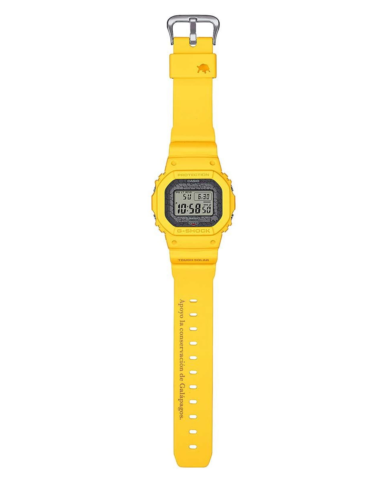 Японские мужские Casio G-Shock GW-B5600CD-9 из коллекции G-Shock. Редкая лимитированная модель — коллаборация G-Shock и Фонда имени Чарльза Дарвина в черном матовом корпусе GW-B5600. Коллаборация посвящена фауне Галапагосских островов, ведь именно там в 1835 году Чарльзу Дарвину пришла идея о его теории эволюции. Каждая из трех лимитированных моделей посвящена одному из редких обитателей животного мира архипелага. Минеральное стеклоМинеральное стеклоМинеральное стекло представляет собой искусственно выращенный минерал кварца. Такое стекло отличается особой устойчивостью к повреждениям и царапинам. Уступает по некоторым качествам сапфировому стеклу. устойчивое к появлению царапин, обладающее высокой прозрачностью. Ударопрочный корпусУдаропрочный корпусМеханизм заключён в корпус, выполненный из современных материалов, устойчивых к ударам, механическим повреждениям и падению с высоты: инновационный пластик, карбон, нержавеющая сталь, титан. из биопластика защищает механизм от ударов и вибрации. Tough SolarTough SolarТехнология основана на подзарядке аккумулятора от источника солнечного света, специальная панель улавливает солнечные лучи и преобразует их в энергию для работы часов. Достаточно пары минут нахождения на солнце для функционирования часов в течении суток.. Светодиодная подсветкаСветодиодная подсветкаСветодиодная или LED-подсветка обеспечивает появление яркого холодного свечения за счёт LED-элементов - маленьких лампочек. Они потребляют минимальное количество энергии, чаще всего можно встретить 1 светодиод, в нижней части циферблата. (Super illuminator) Полностью автоматическая светодиодная подсветка, выбираемая продолжительность подсветки (2 секунды или 4 секунды), послесвечение. Мировое времяМировое время Полезное часовое усложнение, отображающее время в основных городах и известных областях по всему миру, оно связано с часовыми поясами, удобно для путешественников и бизнесменов. – 39 городов (39 часовых поясов). СекундомерСекундомерСекундоме́р — прибор, способный измерять интервалы времени с точностью до долей секунды. с точностью измерения 1/100 секунды и измерением до 23 часов 59 минут 59,99 cек. ТаймерТаймерОтсчитывает секунды в обратном направлении в заданном интервале времени. обратного отсчета (диапазон времени 24 часа), автоматический календарь, 12/24 отображение времени. 5 будильниковБудильникБуди́льник — часы, в заданный момент времени подающие звуковой, световой и/или в редких случаях другой сигнал., ежечасный сигнал. Энергосбережение (дисплей гаснет для экономии энергии, когда часы остаются в темноте). Функция перемещения стрелок для беспрепятственного просмотра информации на цифровых дисплеях и отключения/включения звука. Класс водозащиты: 200 метров, позволит плавать, нырять и заниматься другими водными видами спорта. Ремешок из полимерного материала на стандартной застежке.