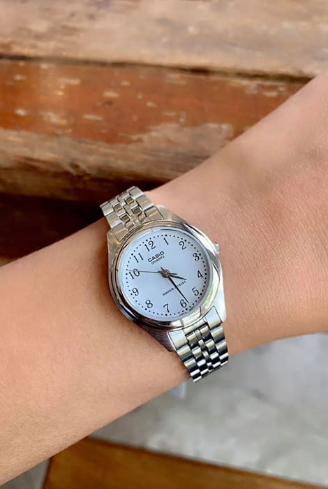 Японские женские часы Casio LTP-1129A-7B изящно смотрятся на запястье, они привлекают классическим исполнением и правильной геометрией. Минималистичная модель станет отличным решением для любого случая: на работу, переговоры с деловыми партнёрами, прогулку с друзьями или праздничный вечер. Отсутствуют лишние детали, что позволяет часам быть актуальными на долгие годы. Корпус выполнен из нержавеющей стали 316L, отличающейся долговечностью и устойчивостью к повреждениям и царапинам. Модель комплектуется надёжным механизмом, точность хода которого составляет +/- 20 сек/мес.Калибр механизма — 1330. Стальной браслет. Водонепроницаемость 30 метров, позволит защитить корпус от случайных брызг или капель дождя.