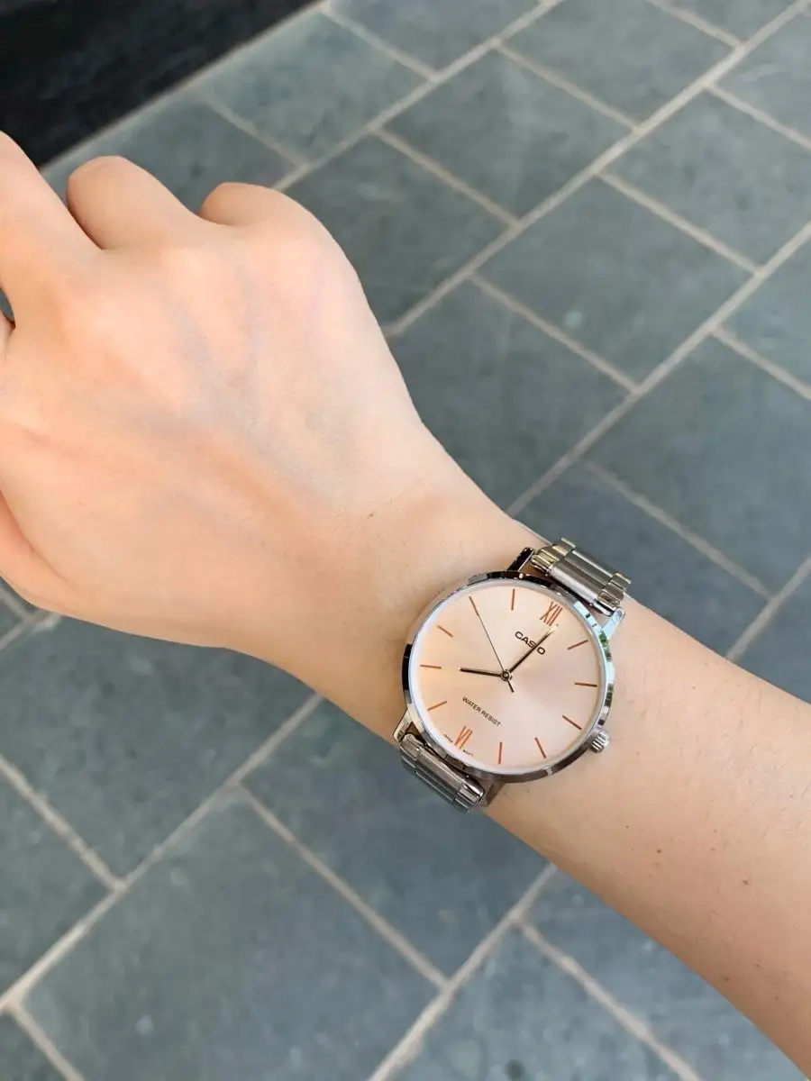 Японские женские часы LTP-VT01D-4B с минеральным стекломМинеральное стеклоМинеральное стекло представляет собой искусственно выращенный минерал кварца. Такое стекло отличается особой устойчивостью к повреждениям и царапинам. Уступает по некоторым качествам сапфировому стеклу. изящно смотрятся на запястье, они привлекают классическим исполнением и правильной геометрией. Минималистичная модель станет отличным решением для любого случая: на работу, переговоры с деловыми партнёрами, прогулку с друзьями или праздничный вечер. Отсутствуют лишние детали, что позволяет часам быть актуальными на долгие годы. Корпус выполнен из нержавеющей стали. Модель комплектуется надёжным механизмом, точность хода которого составляет +/- 20 сек/мес. Стальной браслет на раскладной застёжкеРаскладная застёжкаТакой тип застёжки используется только на браслетах из металла. Она никогда не раскрывается полностью, происходит разделение на 2 и более частей. Раскладывающая застёжка снизит вероятность потери часов к минимуму.. Класс водозащиты: 30 метров, позволит защитить корпус от случайных брызг или капель дождя.