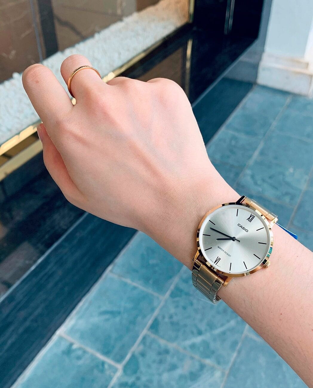 Японские женские часы LTP-VT01G-9B с минеральным стекломМинеральное стеклоМинеральное стекло представляет собой искусственно выращенный минерал кварца. Такое стекло отличается особой устойчивостью к повреждениям и царапинам. Уступает по некоторым качествам сапфировому стеклу. изящно смотрятся на запястье, они привлекают классическим исполнением и правильной геометрией. Минималистичная модель станет отличным решением для любого случая: на работу, переговоры с деловыми партнёрами, прогулку с друзьями или праздничный вечер. Отсутствуют лишние детали, что позволяет часам быть актуальными на долгие годы. Корпус выполнен из нержавеющей стали с IP-покрытиемIP-покрытиеМетод ионного напыления. Демонстрирует повышенную устойчивость к истиранию, окислению и химическим веществам. Под воздействием высокого давления и температуры около 1500°C молекулы металла надёжно соединяются с частицами корпуса часов.. Модель комплектуется надёжным механизмом, точность хода которого составляет +/- 20 сек/мес. Водостойкость: 30 метров, позволит защитить корпус от случайных брызг или капель дождя. Стальной браслет на раскладной застёжкеРаскладная застёжкаТакой тип застёжки используется только на браслетах из металла. Она никогда не раскрывается полностью, происходит разделение на 2 и более частей. Раскладывающая застёжка снизит вероятность потери часов к минимуму..