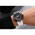 Японские мужские часы Casio G-Shock MRG-B2000SG-1A – дань богатой на легенды и события истории Японии. Восславляя мастерство древних японских ремесленников, эти потрясающие часы успешно воплощают дух самураев, легендарных и искусных воинов. Одновременно с этим, модель инкорпорирует в свой облик знаменитый кабуто-шлем Shougeki-Maru: Gai, который был изготовлен Casio специально для линейки MR-G. Кабуто — это японский боевой шлем, который использовался самураями в период эдо, и считался крайне важным элементом экипировки, а также символом чести и силы. На безелеБезельВнешний ободок, закрепляющий стекло. В спортивных часах так называется поворотное кольцо с делениями на циферблате, выполняет роль таймера – замеряет отрезки времени на шкале. Неподвижный безель – элемент декора. Однонаправленно вращающийся безель на дайверских часах позволяет фиксировать моменты погружения и выныривания на поверхность. с DLC-покрытиемDLC-покрытиеDiamond like carbon - одно из лучших видов покрытия, представляющее собой углерод с алмазными свойствами. На поверхность материала наносятся распавшиеся молекулы углерода, превращающиеся в плёнку из алмазоподобных связей, которая перенимает твёрдость алмаза. изображен золотой гребень этого совершенно особенного шлема с рисунком в виде тигра и каменнозернистым рельефом, искусно выгравированным мастером по металлу Кобаяси Масао. Все часы ограниченной серии - единственные в своем роде, с ручной гравировкой, выполненной мастером-изготовителем. Ударопрочный корпусУдаропрочный корпусМеханизм заключён в корпус, выполненный из современных материалов, устойчивых к ударам, механическим повреждениям и падению с высоты: инновационный пластик, карбон, нержавеющая сталь, титан. защищает механизм от ударов и вибрации.Сапфировое стеклоСапфировое стеклоПрочный и надёжный материал из кристалла сапфира синтетического происхождения, характеризующийся особой твёрдостью и устойчивостью к царапинам и повреждениям. устойчивое к появлению царапин, обладающее высокой прозрачностью. Светодиодная подсветкаСветодиодная подсветкаСветодиодная или LED-подсветка обеспечивает появление яркого холодного свечения за счёт LED-элементов - маленьких лампочек. Они потребляют минимальное количество энергии, чаще всего можно встретить 1 светодиод, в нижней части циферблата. (Super Illuminator), послесвечение. Двойное время, 27 часовых поясов, смена времени в домашнем городе, автоматическое переключение летнего времени (DST). 12/24-часовой формат. Вечный календарьВечный календарьКлассическое часовое усложнение, представляющее собой календарь, рассчитанный на несколько лет вперёд (стандартно – до 2099 года). Определяет текущую дату, день недели, месяц.. СекундомерСекундомерСекундоме́р — прибор, способный измерять интервалы времени с точностью до долей секунды.. ТаймерТаймерОтсчитывает секунды в обратном направлении в заданном интервале времени.. Ежедневный будильник. Автоматическая коррекция исходного положения стрелки. Класс водозащиты: 200 метров, позволит плавать, нырять и заниматься другими водными видами спорта. Ремешок из полимерного материала на раскладной застёжкеРаскладная застёжкаТакой тип застёжки используется только на браслетах из металла. Она никогда не раскрывается полностью, происходит разделение на 2 и более частей. Раскладывающая застёжка сн