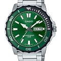 Мужские японские часы Casio MTD-125D-3A, кварцевый механизм с высокой точностью. Класс водозащиты: 100 метров. Круглый стальной корпус изготовлен из нержавеющей стали и алюминия.Поворотный безельБезельВнешний ободок, закрепляющий стекло. В спортивных часах так называется поворотное кольцо с делениями на циферблате, выполняет роль таймера – замеряет отрезки времени на шкале. Неподвижный безель – элемент декора. Однонаправленно вращающийся безель на дайверских часах позволяет фиксировать моменты погружения и выныривания на поверхность. из стали с пластиковой вставкой. Окошко даты на отметке 3 часа. Рифленая заводная головка. Стальной браслет на раскладной застёжкеРаскладная застёжкаТакой тип застёжки используется только на браслетах из металла. Она никогда не раскрывается полностью, происходит разделение на 2 и более частей. Раскладывающая застёжка снизит вероятность потери часов к минимуму..