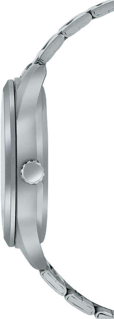 Аксессуар в классическом серебристом исполнении никогда не утратит актуальности, он будет прекрасным дополнением к классическому костюму, спортивной футболке, модных джинсах. Компактный циферблат выполнен в минималистичном стиле, с метками в виде штрихов. Контрастные стрелки и метки хорошо видны на его фоне. Высокоточный кварцевый механизм.