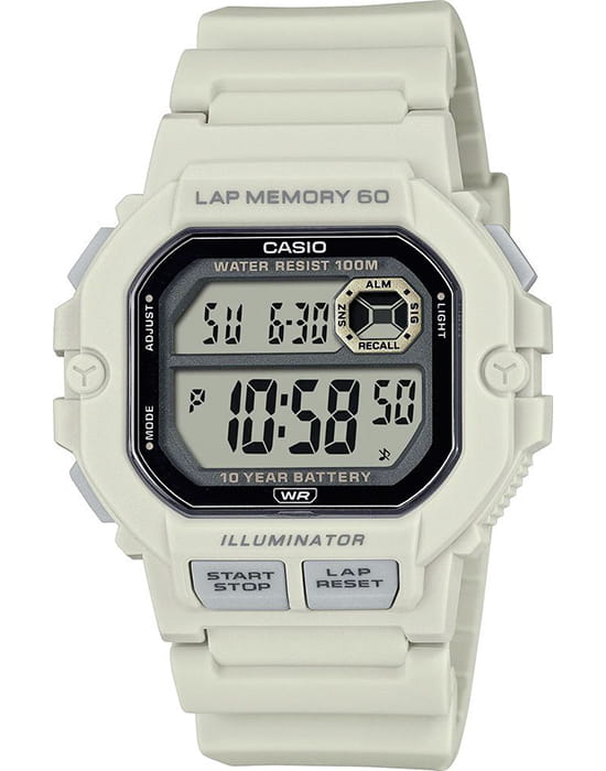 Casio Collection WS-1400H-8A — функциональная спортивная модель с цифровым дисплеем, созданная для активного образа жизни. Корпус и ремешок выполнены из прочного полимерного материала, что обеспечивает лёгкость и устойчивость к внешним воздействиям. Размер корпуса — около 45 × 47 мм, толщина 13 мм, вес всего 43 г, благодаря чему часы удобно сидят на запястье.