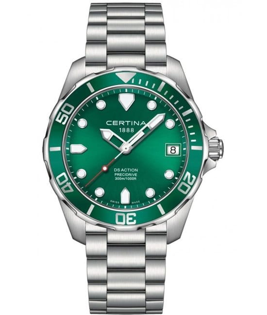 Часы отражают концепцию долговечности и практичности, использование инновационных материалов и высокоточного швейцарского калибра ETA F07.411 Precidrive™Precidrive™Инновационный кварцевый механизм Certina. Часы, оснащённые этим швейцарским калибром, приравниваются к точности к сертифицированным хронометрам, точность хода составляет +/-10 секунд в год. позволяет часам стильно выглядеть и сохранять безупречную работоспособность. Ударопрочный корпусУдаропрочный корпусМеханизм заключён в корпус, выполненный из современных материалов, устойчивых к ударам, механическим повреждениям и падению с высоты: инновационный пластик, карбон, нержавеющая сталь, титан. и браслет из стали, устойчивой к царапинам и повреждениям. Сапфировое стекло. Система Double SecurityDS ConceptDouble Security Concept, обозначает двойную надёжность и безупречную точность часов Certina. Двойная система защиты подразумевает обеспечение максимальной устойчивости к ударам и высоких показателей водонепроницаемости.. Вращающийся безельБезельВнешний ободок, закрепляющий стекло. В спортивных часах так называется поворотное кольцо с делениями на циферблате, выполняет роль таймера – замеряет отрезки времени на шкале. Неподвижный безель – элемент декора. Однонаправленно вращающийся безель на дайверских часах позволяет фиксировать моменты погружения и выныривания на поверхность.. Водонепроницаемость WR 300. Апертура даты, функция EOLEOLПредставляет собой систему, уведомляющую владельца часов о необходимости замены элемента питания. За 2 недели до полного разряда батарейки секундная стрелка перестаёт ходить чётко и начинает перепрыгивать на 3-4 деления.. «Умная» застёжка с удлинением для дайверовУдлинение для дайверовЗастёжка с удлинением для дайверов представляет собой безопасное крепление, которое позволяет надевать часы поверх гидрокостюма. Гибкая застёжка удлиняется на 1-2 миллиметра.. Диаметр корпуса: 41 мм.