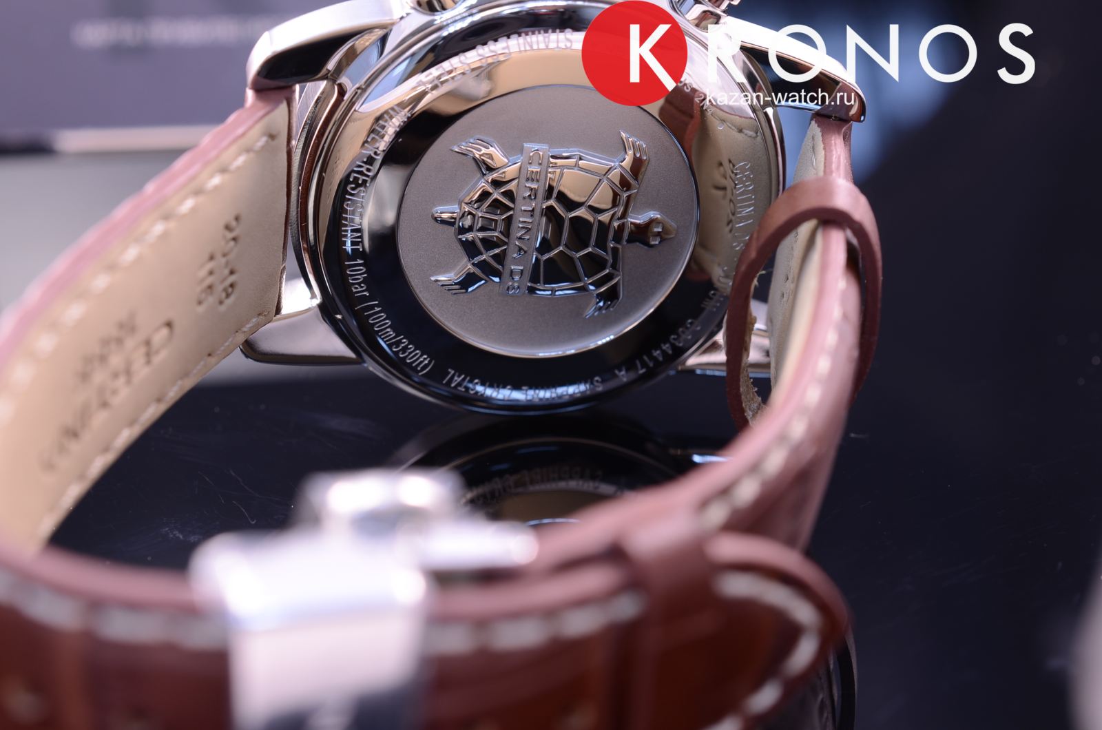Наручные часы гармонично объединяет лаконичность чёрного циферблата и металлический блеск нержавеющей стали 316L. Спортивный аксессуар будет идеальным компаньоном для повседневного образа. Швейцарский кварцевый калибр ETA G10.212 Precidrive™Precidrive™Инновационный кварцевый механизм Certina. Часы, оснащённые этим швейцарским калибром, приравниваются к точности к сертифицированным хронометрам, точность хода составляет +/-10 секунд в год. отличается отменной точностью хода и никогда не подведёт вас. Водонепроницаемость до 10 бар. Реализация концепции DS ConceptDS ConceptDouble Security Concept, обозначает двойную надёжность и безупречную точность часов Certina. Двойная система защиты подразумевает обеспечение максимальной устойчивости к ударам и высоких показателей водонепроницаемости.. Антибликовая обработка для сапфирового стекла. Люминесцентная подсветкаЛюминесцентное покрытиеПозволяет считывать показания времени в темноте. Производители наносят на стрелки, часовые индексы, безель или поверхность циферблата светонакопительный состав, дающий холодное свечение.. Заводная головка с защитой. Ударопрочный корпусУдаропрочный корпусМеханизм заключён в корпус, выполненный из современных материалов, устойчивых к ударам, механическим повреждениям и падению с высоты: инновационный пластик, карбон, нержавеющая сталь, титан.. Ремешок из натуральной кожи. Предохранительная . Окошко даты, шкала тахиметраТахиметрРазмеченная шкала, располагается на ободке или безеле часов. Тахиметр позволяет рассчитать скорость на определённом участке пути, расстояние измеряется в километрах или милях., секундомер, хронографХронографФункция позволяет измерять отрезки времени с особой точностью: часы, минуты, секунды. Верным признаком хронографа является наличие на циферблате 3 дополнительных окошек-счётчиков.. Диаметр корпуса: 41 мм.