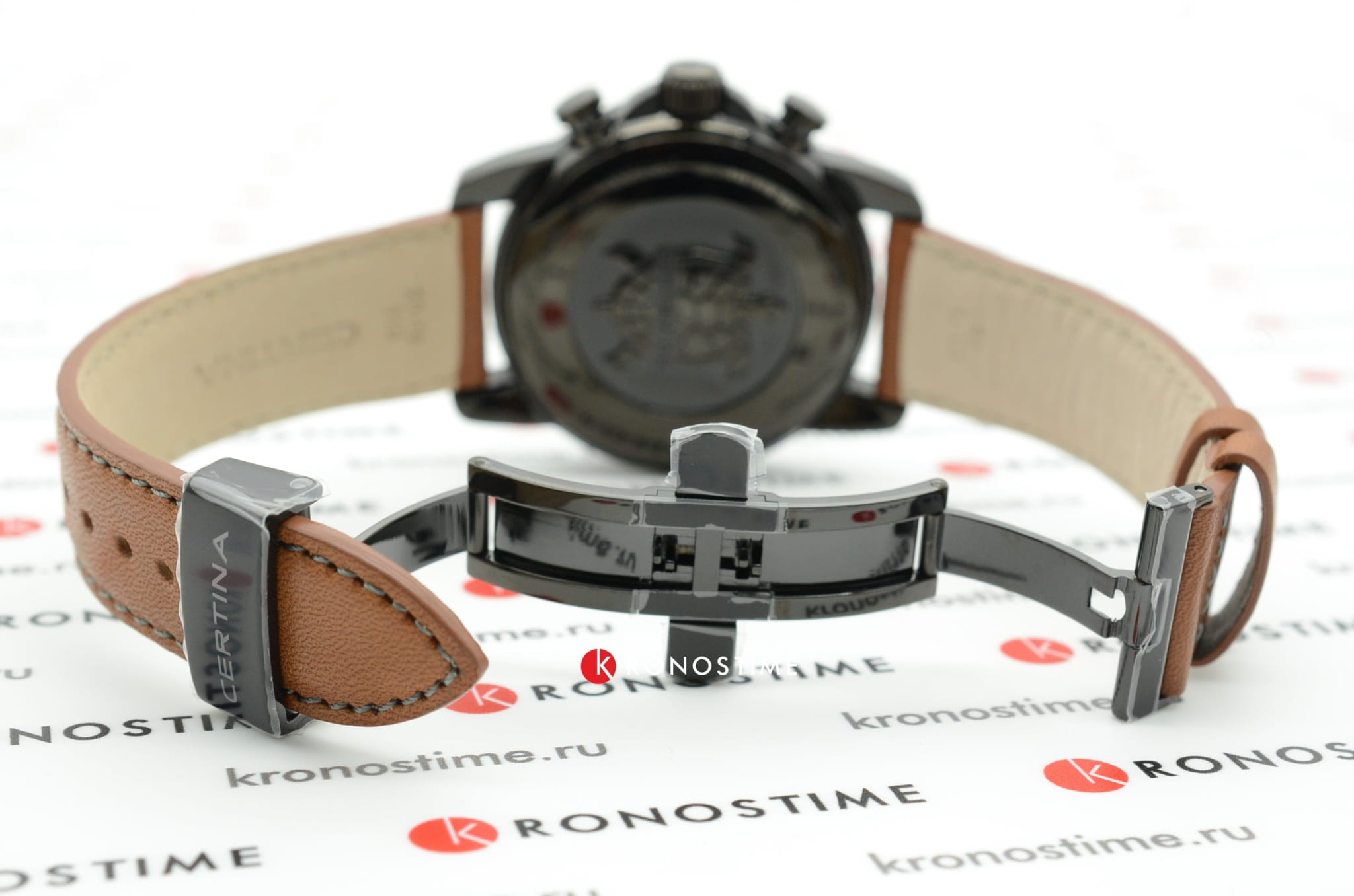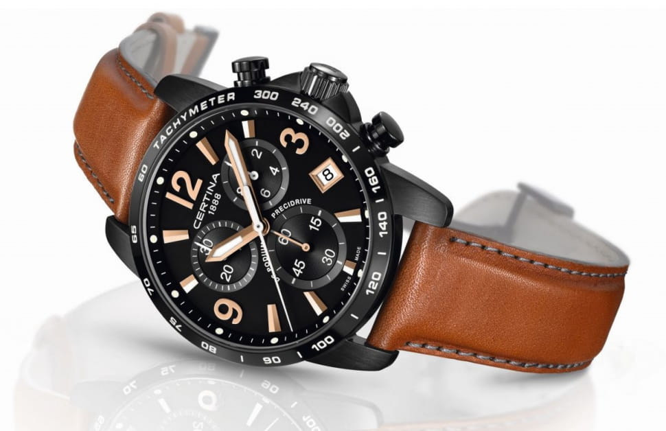 Аксессуар станет неотъемлемым атрибутом образа, наполнит его стильной динамичностью. Швейцарский кварцевый калибр ETA G10.212 Precidrive™Precidrive™Инновационный кварцевый механизм Certina. Часы, оснащённые этим швейцарским калибром, приравниваются к точности к сертифицированным хронометрам, точность хода составляет +/-10 секунд в год. измеряет время с абсолютной точностью, позволяя всегда находиться в центре событий. Концепция Двойной Надёжности DS ConceptDS ConceptDouble Security Concept, обозначает двойную надёжность и безупречную точность часов Certina. Двойная система защиты подразумевает обеспечение максимальной устойчивости к ударам и высоких показателей водонепроницаемости.. Антибликовая поверхность стекла из сапфира. Люминесцентная подсветкаЛюминесцентное покрытиеПозволяет считывать показания времени в темноте. Производители наносят на стрелки, часовые индексы, безель или поверхность циферблата светонакопительный состав, дающий холодное свечение. стрелок. БезельБезельВнешний ободок, закрепляющий стекло. В спортивных часах так называется поворотное кольцо с делениями на циферблате, выполняет роль таймера – замеряет отрезки времени на шкале. Неподвижный безель – элемент декора. Однонаправленно вращающийся безель на дайверских часах позволяет фиксировать моменты погружения и выныривания на поверхность. со шкалой тахиметраТахиметрРазмеченная шкала, располагается на ободке или безеле часов. Тахиметр позволяет рассчитать скорость на определённом участке пути, расстояние измеряется в километрах или милях.. Заводная головка с системой защиты. Ударопрочный корпусУдаропрочный корпусМеханизм заключён в корпус, выполненный из современных материалов, устойчивых к ударам, механическим повреждениям и падению с высоты: инновационный пластик, карбон, нержавеющая сталь, титан. из нержавеющей стали с чёрным PVD-покрытиемPVDУльтратонкое покрытие наносится в технике вакуумного напыления, сочетает в себе нитрид титана особой прочности со слоем золота или оксида хрома. Несёт в себе декоративную или защитную функцию.. Ремешок из натуральной кожи. Безопасная . Окошко даты, секундомер, измеряющий десятые доли секунды, индикатор EOLEOLПредставляет собой систему, уведомляющую владельца часов о необходимости замены элемента питания. За 2 недели до полного разряда батарейки секундная стрелка перестаёт ходить чётко и начинает перепрыгивать на 3-4 деления.. Диаметр корпуса: 41 мм.