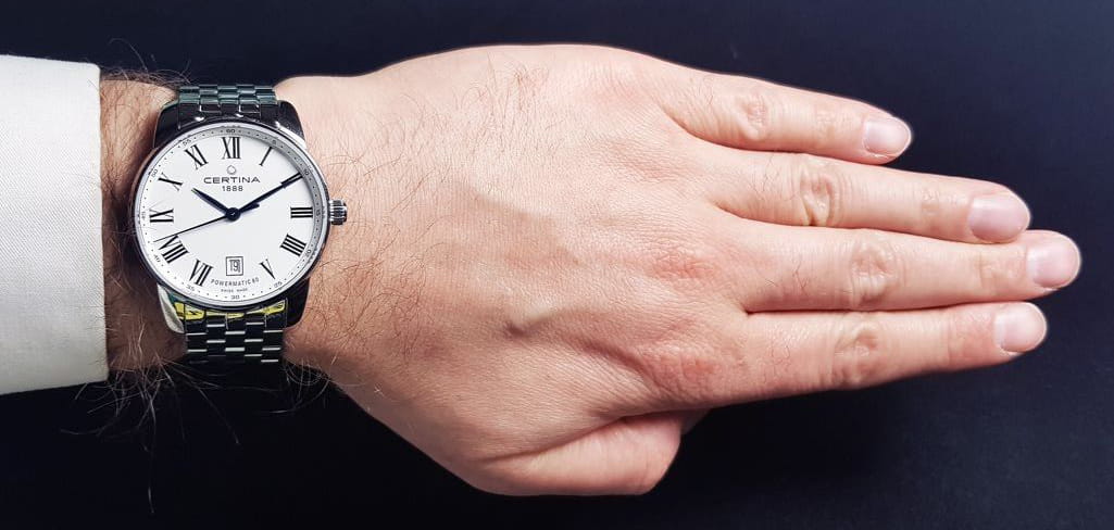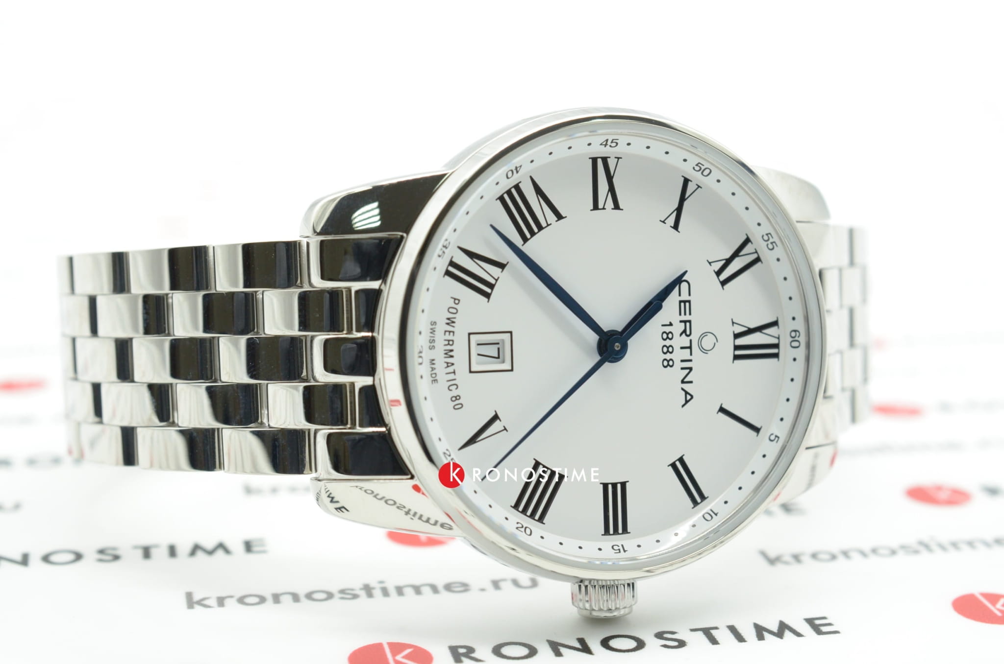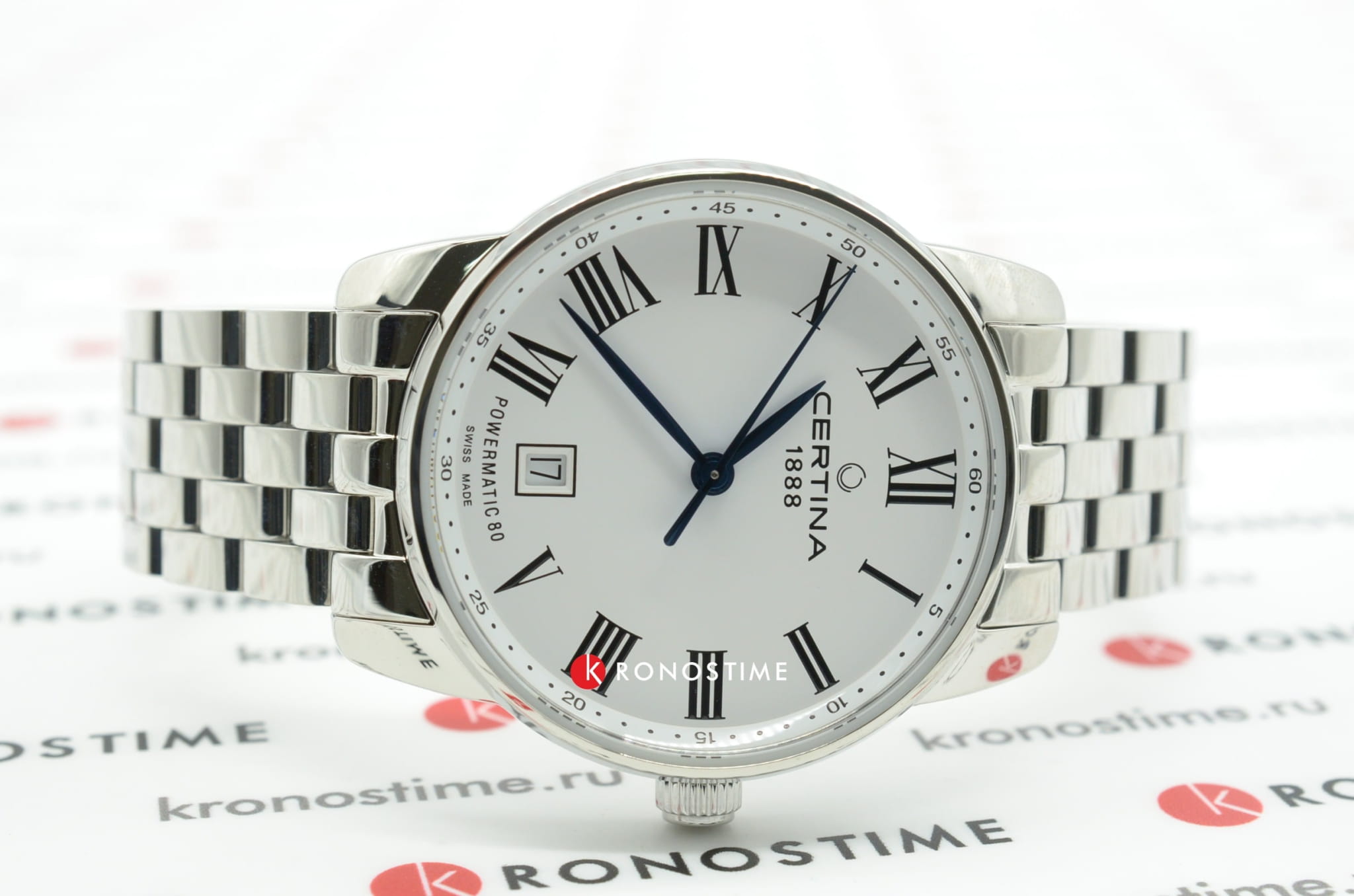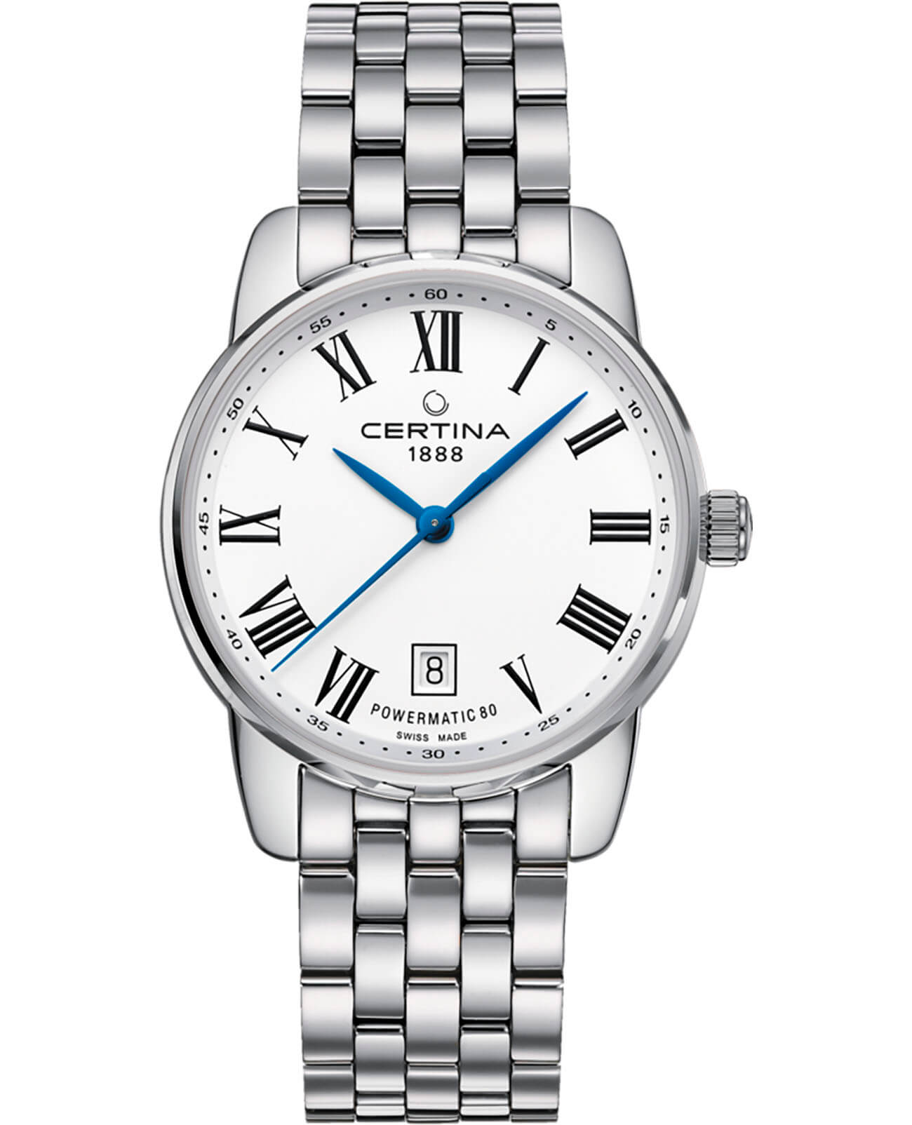Элегантный стиль, широкий браслет, минималистичный циферблат, синие контрастные стрелки – модель выглядит ярко и в то же время строго. Это позволяет носить часы при любых обстоятельствах, Будь то повседневная прогулка или бизнес-встреча. Часы оснащены швейцарским автоматическим механизмом ETA Powermatic 80Powermatic 80Эксклюзивный калибр от швейцарской компании ETA с увеличенным запасом хода до 80 часов за счёт удлинённой заводной пружины. Характеризуется улучшенной системой спуска со сниженным трением. с увеличенным запасом хода до 80 часов. Циферблат дополнен сапфировым стеклом, антибликовое покрытие которого обеспечивает идеальную читаемость данных даже при ярком свете. Наручные часы отличаются ударопрочностью и водонепроницаемостью 100 метров благодаря фирменной концепции DS ConceptDS ConceptDouble Security Concept, обозначает двойную надёжность и безупречную точность часов Certina. Двойная система защиты подразумевает обеспечение максимальной устойчивости к ударам и высоких показателей водонепроницаемости.. Корпус и браслет сделаны из стали 316L, материал долговечен и устойчив к коррозии. На метке 6 часов размещено окошко даты. Диаметр корпуса: 39 мм.