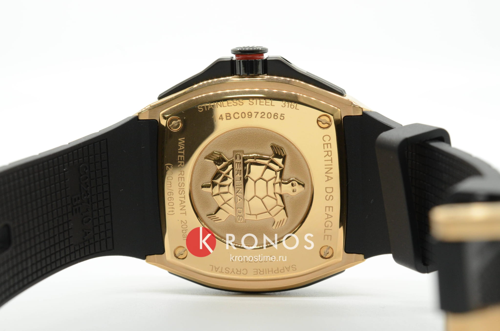 Аксессуар в спортивном стиле оснащён швейцарским кварцевым калибром ETA F07.411 Precidrive™Precidrive™Инновационный кварцевый механизм Certina. Часы, оснащённые этим швейцарским калибром, приравниваются к точности к сертифицированным хронометрам, точность хода составляет +/-10 секунд в год.. Часы основаны на концепции Двойной Надёжности DS ConceptDS ConceptDouble Security Concept, обозначает двойную надёжность и безупречную точность часов Certina. Двойная система защиты подразумевает обеспечение максимальной устойчивости к ударам и высоких показателей водонепроницаемости.. Стальной корпус защищён PVD-покрытиемPVDУльтратонкое покрытие наносится в технике вакуумного напыления, сочетает в себе нитрид титана особой прочности со слоем золота или оксида хрома. Несёт в себе декоративную или защитную функцию. золотистого цвета. Ремешок сделан из прочного, надёжного каучука.