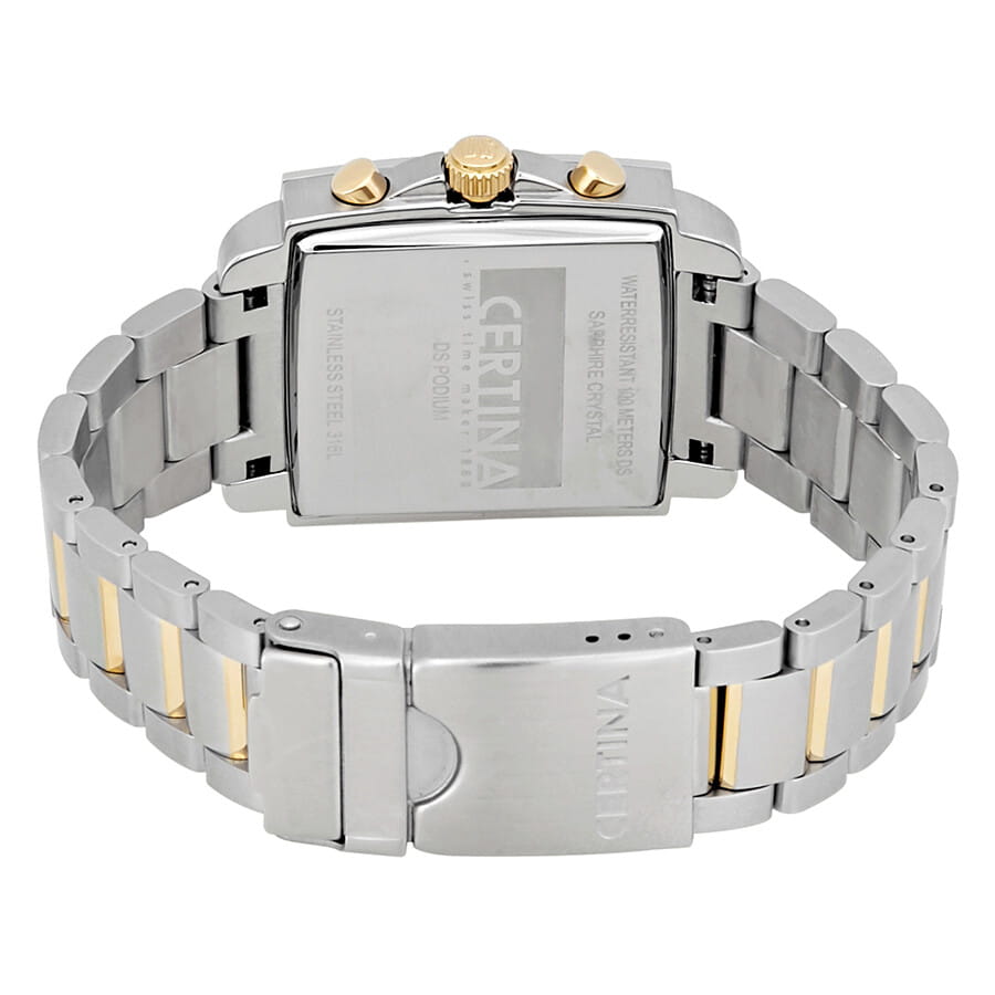 Кварцевый механизм с высокой точностью. Часы-хронографХронографФункция позволяет измерять отрезки времени с особой точностью: часы, минуты, секунды. Верным признаком хронографа является наличие на циферблате 3 дополнительных окошек-счётчиков.. Сапфировое стеклоСапфировое стеклоПрочный и надёжный материал из кристалла сапфира синтетического происхождения, характеризующийся особой твёрдостью и устойчивостью к царапинам и повреждениям. устойчивое к появлению царапин, обладающее высокой прозрачностью. Стрелки с люминесцентным покрытиемЛюминесцентное покрытиеПозволяет считывать показания времени в темноте. Производители наносят на стрелки, часовые индексы, безель или поверхность циферблата светонакопительный состав, дающий холодное свечение.. Класс водозащиты: 100 метров, позволит плавать, нырять и заниматься другими водными видами спорта. Корпус часов изготовлен из нержавеющей стали. Браслет с частичным PVD-покрытиемPVDУльтратонкое покрытие наносится в технике вакуумного напыления, сочетает в себе нитрид титана особой прочности со слоем золота или оксида хрома. Несёт в себе декоративную или защитную функцию. и с раскладной застёжкойРаскладная застёжкаТакой тип застёжки используется только на браслетах из металла. Она никогда не раскрывается полностью, происходит разделение на 2 и более частей. Раскладывающая застёжка снизит вероятность потери часов к минимуму..