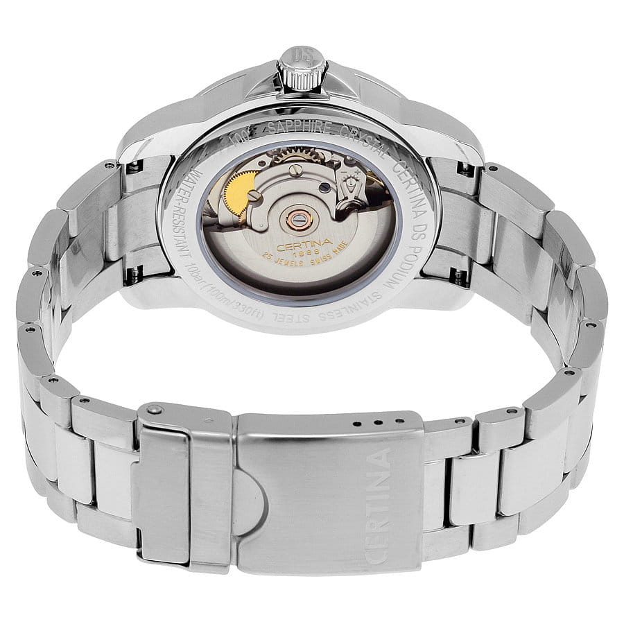 Спортивный дух и элегантность великолепно сочетаются в этих устойчивых к износу часах: классическая модель DS Podium будет прекрасно смотреться на любом торжественном мероприятии. Лаконичный циферблат с окошком даты на 6 часах улучшает читаемость времени и делает дизайн минималистическим. Люминесцентное покрытиеЛюминесцентное покрытиеПозволяет считывать показания времени в темноте. Производители наносят на стрелки, часовые индексы, безель или поверхность циферблата светонакопительный состав, дающий холодное свечение. цифр, индексов, часовой и минутной стрелок. Precidrive™Precidrive™Инновационный кварцевый механизм Certina. Часы, оснащённые этим швейцарским калибром, приравниваются к точности к сертифицированным хронометрам, точность хода составляет +/-10 секунд в год. - это название инновационной технологии, которая делает часы Certina чрезвычайно точными. Часы с кварцевыми калибрами Precidrive™Precidrive™Инновационный кварцевый механизм Certina. Часы, оснащённые этим швейцарским калибром, приравниваются к точности к сертифицированным хронометрам, точность хода составляет +/-10 секунд в год. приближаются по точности к хронометрам. С учетом погрешности в +/-10 секунд в год, часыPrecidrive™Precidrive™Инновационный кварцевый механизм Certina. Часы, оснащённые этим швейцарским калибром, приравниваются к точности к сертифицированным хронометрам, точность хода составляет +/-10 секунд в год. в 8-10 раз более точны, чем обычные кварцевые.