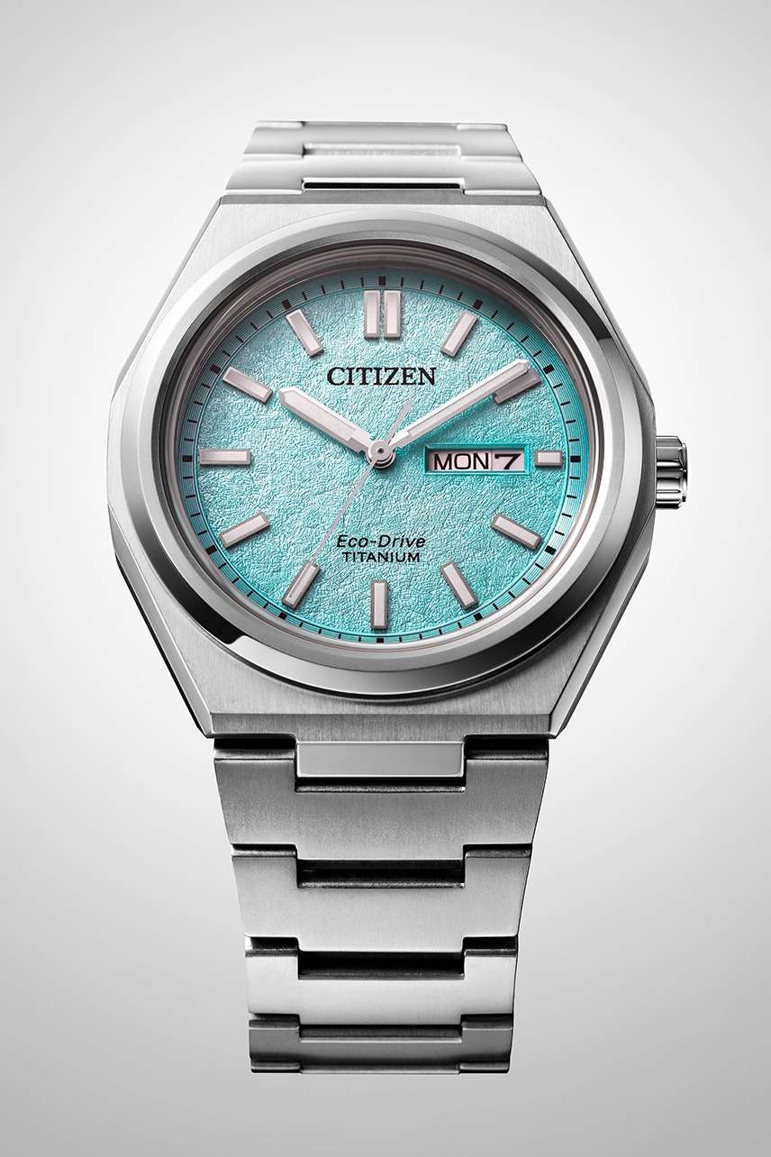 Часы Citizen AW0130-85M сочетают в себе японское качество, современный стиль и передовые технологии. Корпус и браслет модели выполнены из суперлегкого титана, что обеспечивает легкость и комфорт в носке, а также высокую прочность и устойчивость к коррозии. Диаметр корпуса составляет 39,5 мм, толщина — 9,8 мм, вес часов — всего около 91 грамма. Бирюзовый текстурный циферблат украшен центральными часовой, минутной и секундной стрелками, а также апертурой даты и дня недели в положении 3 часа. Надежный кварцевый механизм Citizen J800 работает на инновационной системе Eco-Drive, питается от солнечной энергии и не требует замены батарейки, обеспечивая запас хода до 240 дней. Часы оснащены функцией индикации уровня заряда EOLEOLПредставляет собой систему, уведомляющую владельца часов о необходимости замены элемента питания. За 2 недели до полного разряда батарейки секундная стрелка перестаёт ходить чётко и начинает перепрыгивать на 3-4 деления., что позволяет всегда быть уверенным в их работе. Сапфировое стеклоСапфировое стеклоПрочный и надёжный материал из кристалла сапфира синтетического происхождения, характеризующийся особой твёрдостью и устойчивостью к царапинам и повреждениям. надежно защищает циферблат от царапин, а водозащита 100 метров позволяет использовать часы во время плавания без погружения. Стрелки и часовые метки с люминесцентным покрытиемЛюминесцентное покрытиеПозволяет считывать показания времени в темноте. Производители наносят на стрелки, часовые индексы, безель или поверхность циферблата светонакопительный состав, дающий холодное свечение. обеспечивают отличную читаемость даже в темноте. Раскладная застёжкаРаскладная застёжкаТакой тип застёжки используется только на браслетах из металла. Она никогда не раскрывается полностью, происходит разделение на 2 и более частей. Раскладывающая застёжка снизит вероятность потери часов к минимуму. на титановом браслете обеспечивает дополнительное удобство.