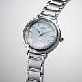 Элегантные часы Citizen EM1100-84D произведены в Японии и оснащены современным кварцевым механизмом Citizen E031 с инновационной системой Eco-Drive, которая использует энергию солнечного света и не требует замены батарейки, обеспечивая до 180 дней работы в автономном режиме. Корпус и браслет выполнены из высококачественной нержавеющей стали, что гарантирует долговечность и износостойкость. Перламутровый голубой циферблат с изящными штриховыми метками защищён выпуклым сапфировым стекломСапфировое стеклоПрочный и надёжный материал из кристалла сапфира синтетического происхождения, характеризующийся особой твёрдостью и устойчивостью к царапинам и повреждениям., устойчивым к царапинам. БезельБезельВнешний ободок, закрепляющий стекло. В спортивных часах так называется поворотное кольцо с делениями на циферблате, выполняет роль таймера – замеряет отрезки времени на шкале. Неподвижный безель – элемент декора. Однонаправленно вращающийся безель на дайверских часах позволяет фиксировать моменты погружения и выныривания на поверхность. часов декорирован алмазной гранью, а заводная головка украшена камнем в форме кабошона, что придаёт модели особый шарм. Задняя крышка закреплена на четырёх винтах, что повышает надёжность конструкции. Часы имеют водозащиту до 50 метров, а также функцию индикации заряда и предотвращения перезарядки. Размер корпуса составляет 31,2 мм в диаметре и 8 мм в толщину, вес — 71 грамм. Застежка «бабочка»Застёжка "бабочка"Такой вид застёжки дополняется предохранителями, помогающими избежать случайного раскрытия браслета. Обладают изящным исполнением. у браслета обеспечивает комфортное и надёжное ношение. Эта модель идеально подчеркнёт изысканный стиль и индивидуальность своей обладательницы.