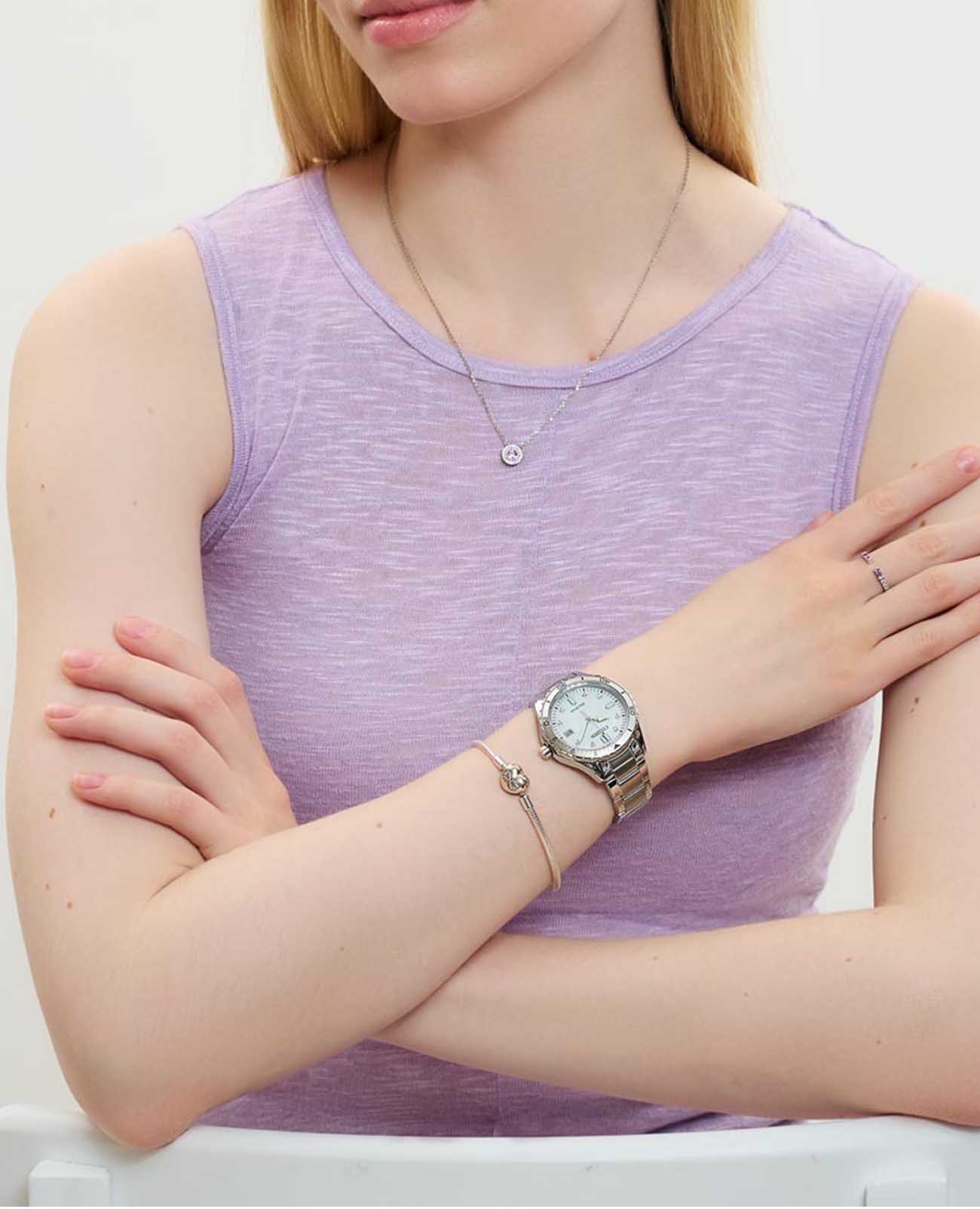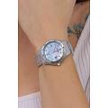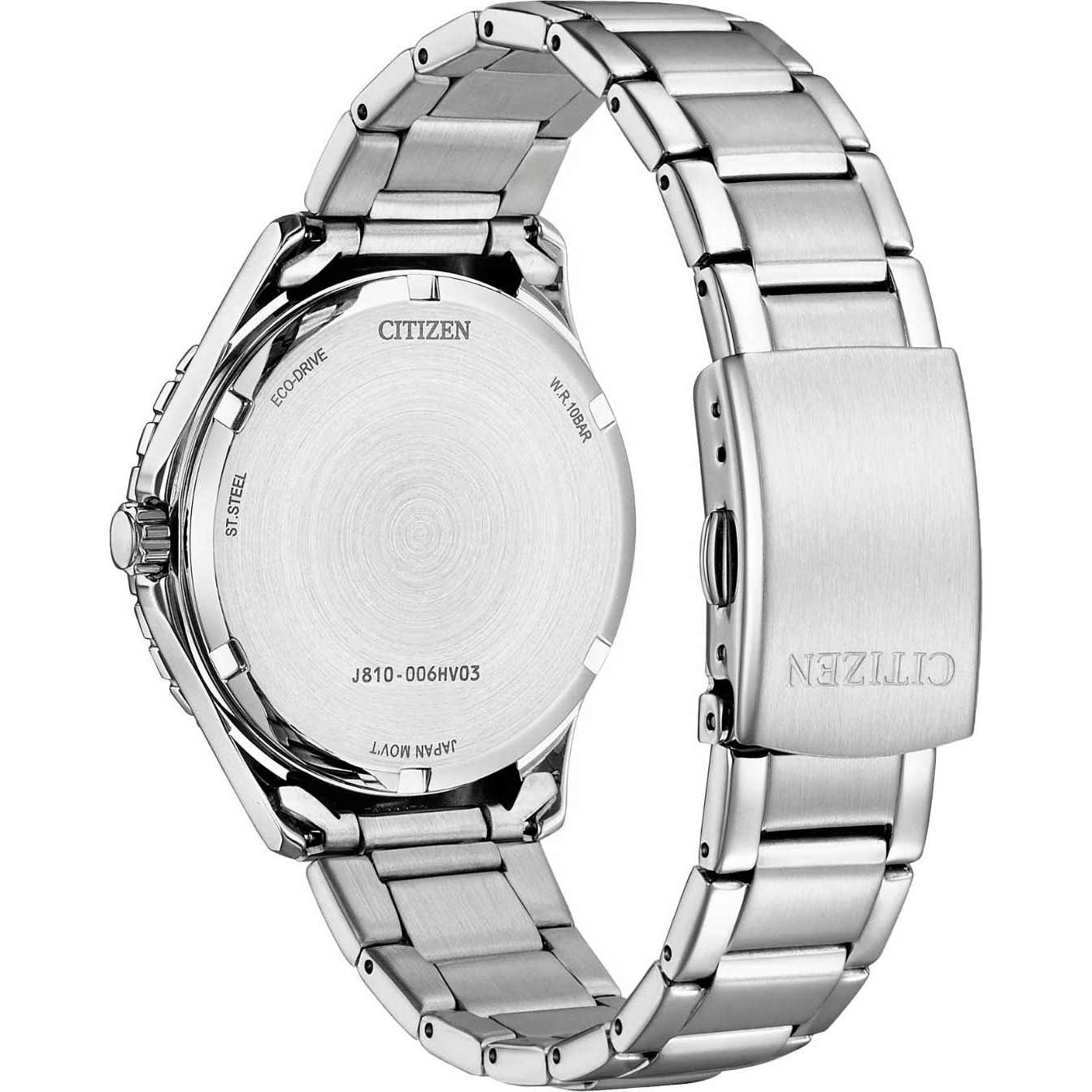 Элегантные женские часы Citizen FE6170-88D станут ярким акцентом любого образа благодаря современному дизайну и высокому качеству исполнения. Корпус диаметром 36,8 мм и толщиной 9,8 мм выполнен из прочной нержавеющей стали, что гарантирует долговечность и надежность. Особое внимание привлекает перламутровый циферблат, украшенный сверкающими кристаллами в виде часовых меток, что придаёт модели утончённый и изысканный вид. Кварцевый механизм с калибром Citizen J810 работает на инновационной системе Eco-Drive — часы заряжаются от любого источника света, обеспечивая запас хода до 240 дней и не требуя замены батарейки. Функции индикации заряда EOLEOLПредставляет собой систему, уведомляющую владельца часов о необходимости замены элемента питания. За 2 недели до полного разряда батарейки секундная стрелка перестаёт ходить чётко и начинает перепрыгивать на 3-4 деления. и предотвращения перезарядки обеспечивают дополнительное удобство в использовании. Окошко даты расположено на отметке 3 часа для быстрого просмотра текущего числа. Прочное минеральное стеклоМинеральное стеклоМинеральное стекло представляет собой искусственно выращенный минерал кварца. Такое стекло отличается особой устойчивостью к повреждениям и царапинам. Уступает по некоторым качествам сапфировому стеклу. защищает циферблат от случайных царапин, а водозащита уровня 100WR позволяет использовать часы даже во время плавания. А безельБезельВнешний ободок, закрепляющий стекло. В спортивных часах так называется поворотное кольцо с делениями на циферблате, выполняет роль таймера – замеряет отрезки времени на шкале. Неподвижный безель – элемент декора. Однонаправленно вращающийся безель на дайверских часах позволяет фиксировать моменты погружения и выныривания на поверхность. часов с частичным IP-покрытиемIP-покрытиеМетод ионного напыления. Демонстрирует повышенную устойчивость к истиранию, окислению и химическим веществам. Под воздействием высокого давления и температуры около 1500°C молекулы металла надёжно соединяются с частицами корпуса часов. вращается в одном направлении. Стрелки с люминесцентным покрытиемЛюминесцентное покрытиеПозволяет считывать показания времени в темноте. Производители наносят на стрелки, часовые индексы, безель или поверхность циферблата светонакопительный состав, дающий холодное свечение. обеспечивают отличную читаемость времени даже в темное время суток. Стальной браслет с раскладной застёжкойРаскладная застёжкаТакой тип застёжки используется только на браслетах из металла. Она никогда не раскрывается полностью, происходит разделение на 2 и более частей. Раскладывающая застёжка снизит вероятность потери часов к минимуму. обеспечивает комфортное и надежное крепление на запястье. Модель произведена в Японии и отличается высоким стандартом качества.