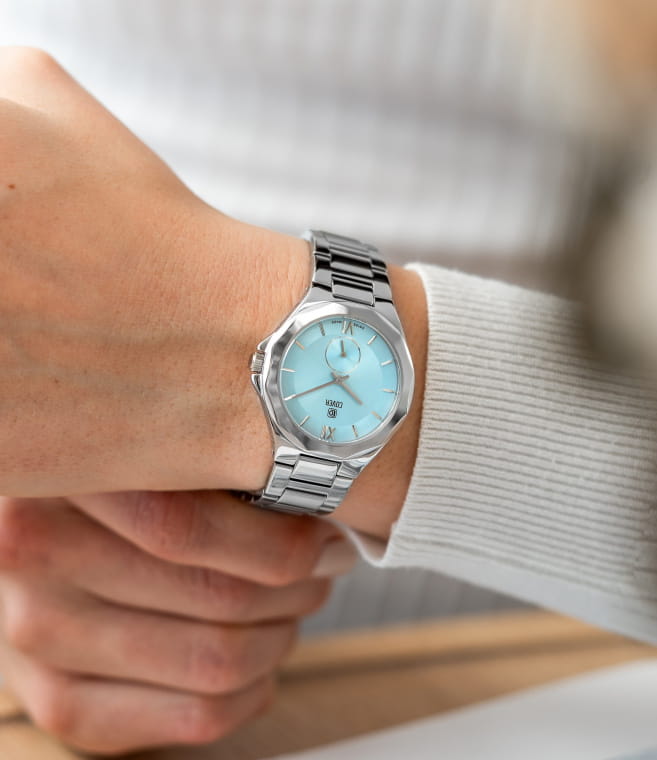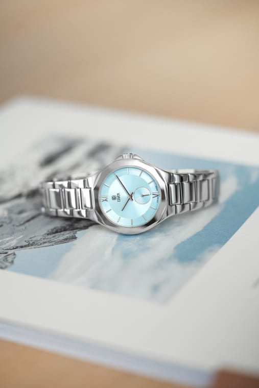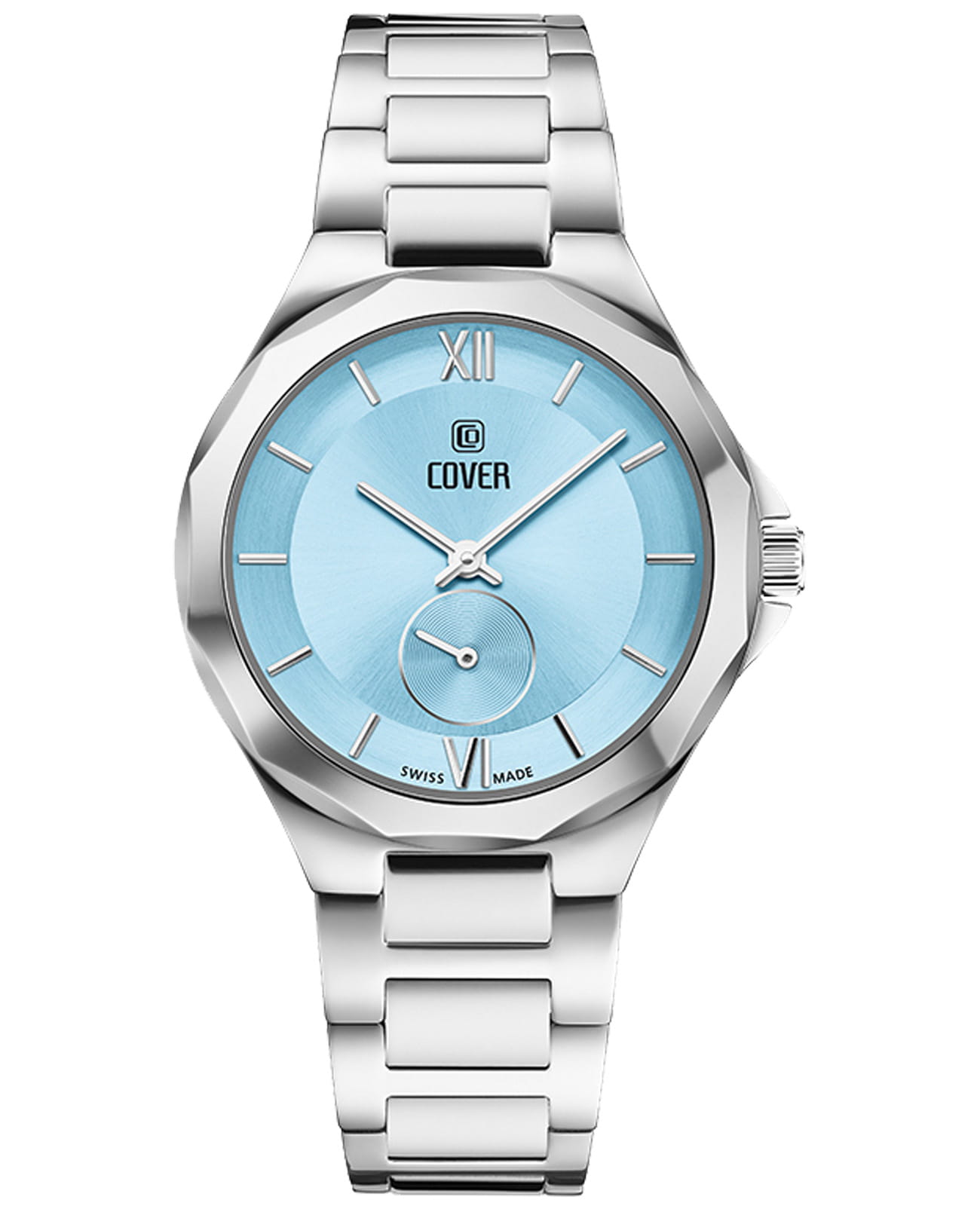 Женские швейцарские часы COVER CO211.01 — это изысканный повседневный аксессуар с оригинальным 12-угольным стальным корпусом из коллекции Cardea. Часы оснащены кварцевым калибром ETA 902.501. Голубой циферблат с круговой сатинированной отделкой и узором Sunray придает им элегантный вид. Накладные индексы и римские цифры VI и XII добавляют стильный акцент. Малая секундная стрелка расположена в положении «6 часов». Интегрированный браслет на раскладной застёжкеРаскладная застёжкаТакой тип застёжки используется только на браслетах из металла. Она никогда не раскрывается полностью, происходит разделение на 2 и более частей. Раскладывающая застёжка снизит вероятность потери часов к минимуму. обеспечивает комфорт и надежность. Часы имеют маркировку «Swiss Made», что подтверждает их высокое качество и точность.