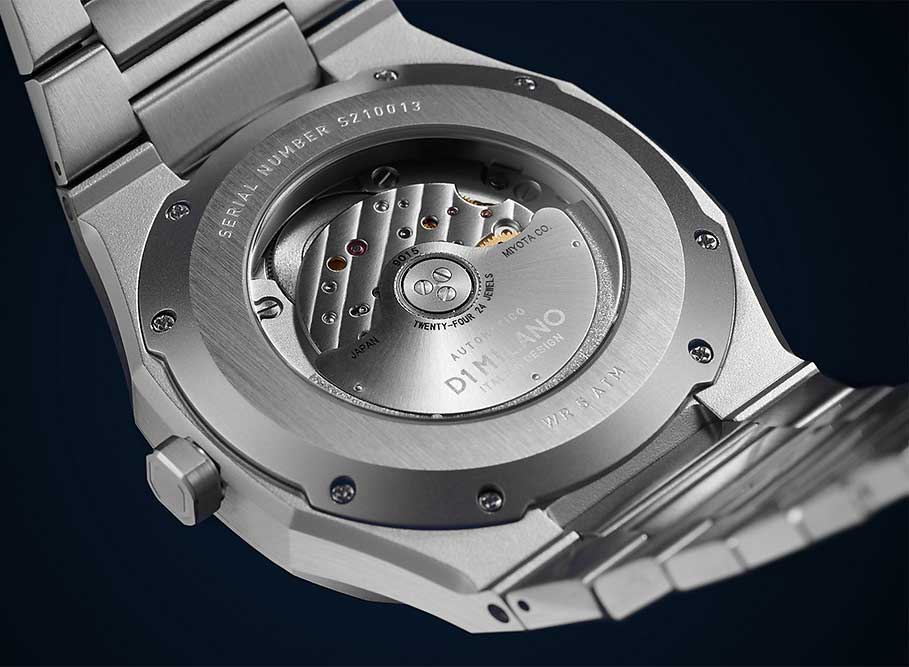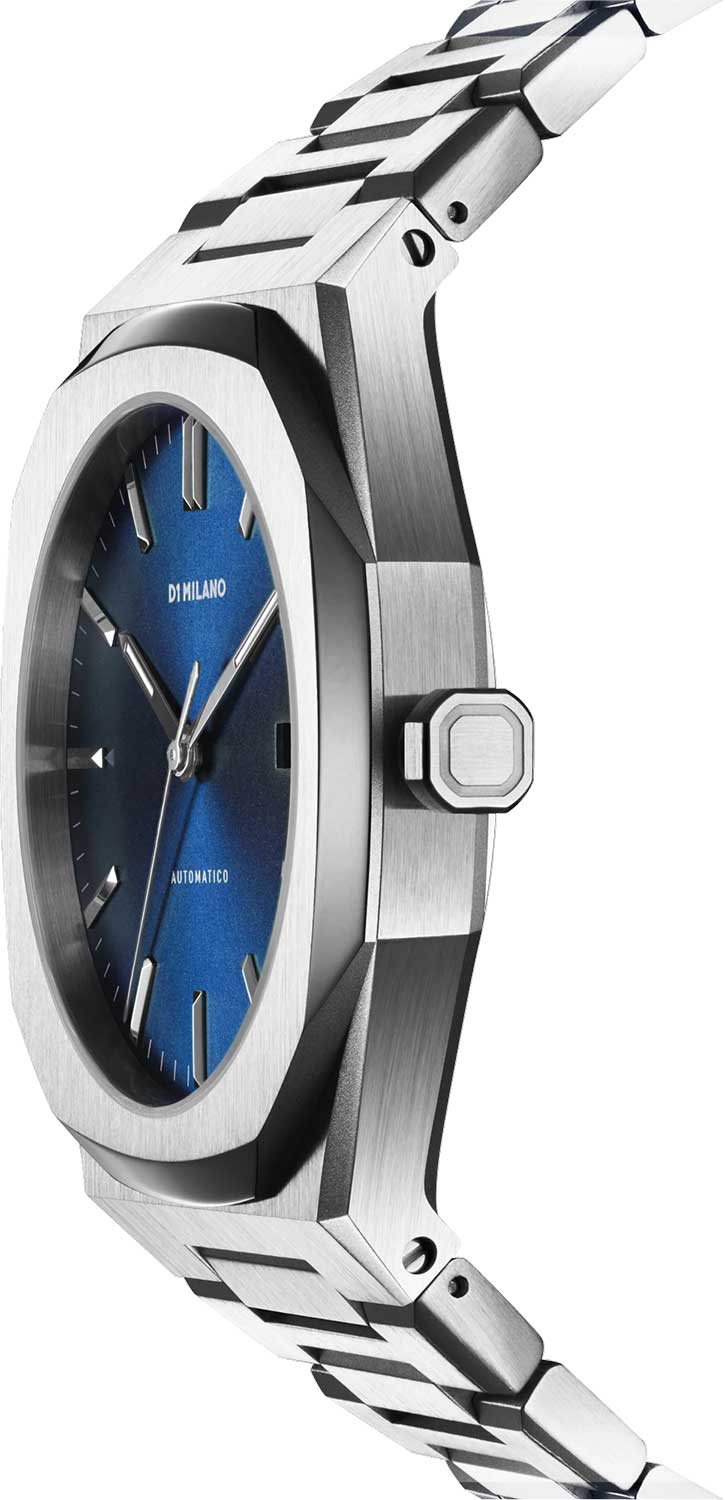 Часы D1 Milano ATBJ11 – стильный аксессуар для современных мужчин. Часы механические с автоподзаводом. В механизме 24 камня, частота 28 800 полуколебаний в час. Запас хода 42 часа. Корпус выполнен из прочной нержавеющей стали 316L, а циферблат украшен простыми штрихами вместо цифр. Стрелки с люминесцентным покрытиемЛюминесцентное покрытиеПозволяет считывать показания времени в темноте. Производители наносят на стрелки, часовые индексы, безель или поверхность циферблата светонакопительный состав, дающий холодное свечение.. Окошко даты расположено в позиции 3 часа, добавляя функциональность дизайну. Задняя крышка прозрачная, закреплена на 8 винтах, что обеспечивает надежность конструкции. Стальной браслет на раскладной застёжкеРаскладная застёжкаТакой тип застёжки используется только на браслетах из металла. Она никогда не раскрывается полностью, происходит разделение на 2 и более частей. Раскладывающая застёжка снизит вероятность потери часов к минимуму.. Часы сочетают в себе классический дизайн и современные технологии производства.
