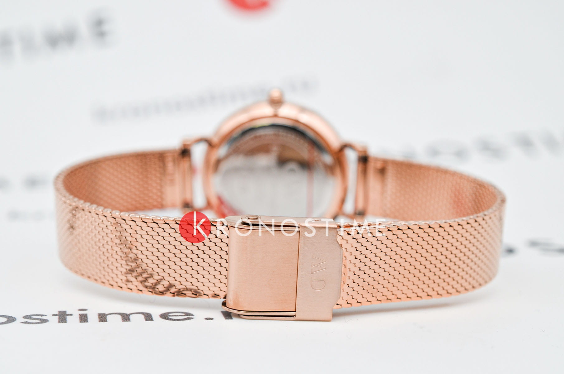 Женские наручные часы с минеральным стекломМинеральное стеклоМинеральное стекло представляет собой искусственно выращенный минерал кварца. Такое стекло отличается особой устойчивостью к повреждениям и царапинам. Уступает по некоторым качествам сапфировому стеклу. Daniel Wellington Petite Reflection Rose Gold DW00100795, кварцевый механизм с высокой точностью. Корпус часов изготовлен из нержавеющей стали с PVD-покрытиемPVDУльтратонкое покрытие наносится в технике вакуумного напыления, сочетает в себе нитрид титана особой прочности со слоем золота или оксида хрома. Несёт в себе декоративную или защитную функцию..Накладные метки в виде штрихов. Японский кварцевый механизм. Рифленая заводная головка. Класс водозащиты: 30 метров, позволит защитить корпус от случайных брызг или капель дождя. Стальной браслет миланского плетения с PVD-покрытиемPVDУльтратонкое покрытие наносится в технике вакуумного напыления, сочетает в себе нитрид титана особой прочности со слоем золота или оксида хрома. Несёт в себе декоративную или защитную функцию. на раскладном замкеРаскладной замокДанный вариант застежки используется только на часах с металлическим браслетом. Отличительная особенность такого крепления в том, что длина браслета становится универсальной и вы можете самостоятельно отрегулировать нужный вам размер – застежка просто двигается по браслету часов..