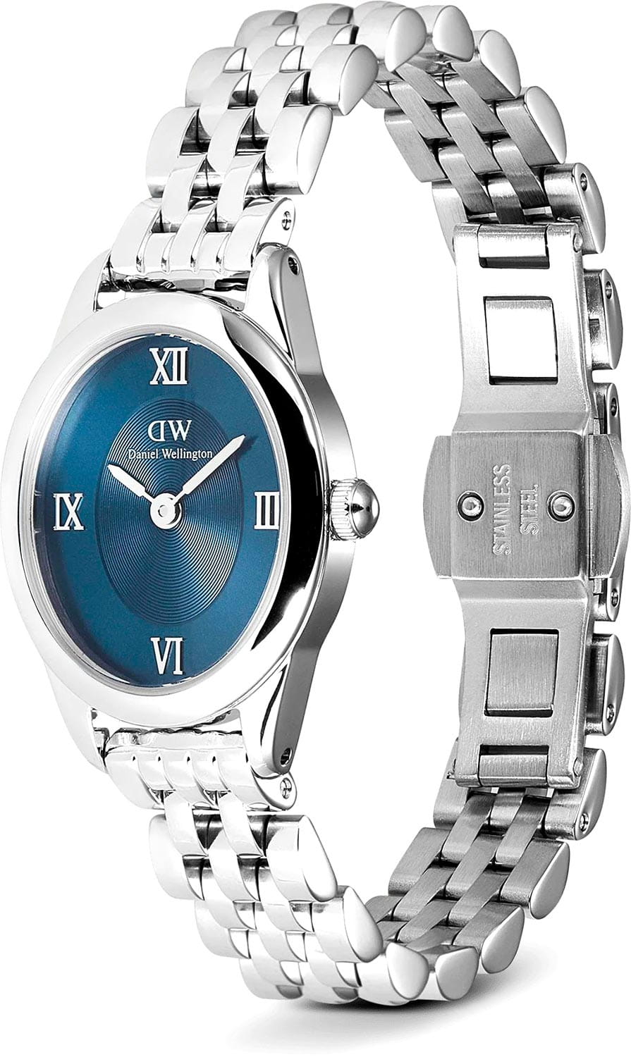 Daniel Wellington Ophelia — женственные часы с овальным корпусом 22 мм из нержавеющей стали с изящным. Глубокий циферблат с радиальным переливом украшен римскими индексами, что придаёт образу классическую элегантность.