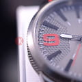 Эффектные  наручные кварцевые мужские часы. Круглый циферблат серого цвета. Корпус часов выполнен из высокопрочной стали,с антикоррозийными свойствами. Минеральное стекло, устойчиво к появлению царапин. Часы надежно удерживаются на руке, силиконовым ремешком ярко красного цвета. Водонепроницаемость 50М.(плавание).