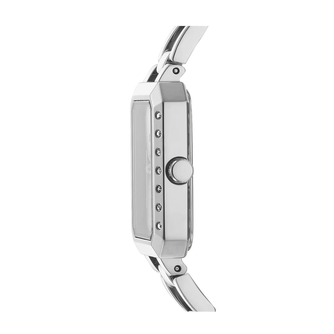 DKNY Uptown Glitz DK1L010M0015 — женские кварцевые часы, объединяющие нью-йоркский гламур и урбанистическую роскошь. Корпус из нержавеющей стали диаметром 36 мм и минеральное стеклоМинеральное стеклоМинеральное стекло представляет собой искусственно выращенный минерал кварца. Такое стекло отличается особой устойчивостью к повреждениям и царапинам. Уступает по некоторым качествам сапфировому стеклу. обеспечивает защиту от царапин, а водонепроницаемость до 30 метров делает модель практичной для активного отдыха или повседневной носки. Стальной браслет с ювелирной застежкой гарантирует комфорт и надежность. БезельБезельВнешний ободок, закрепляющий стекло. В спортивных часах так называется поворотное кольцо с делениями на циферблате, выполняет роль таймера – замеряет отрезки времени на шкале. Неподвижный безель – элемент декора. Однонаправленно вращающийся безель на дайверских часах позволяет фиксировать моменты погружения и выныривания на поверхность. инкрустирован кристаллами. Идеальный аксессуар для женщин, ценящих смелые городские образы с акцентами роскоши — от деловых встреч до вечерних выходов.