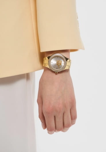 DKNY Parsons Glitz DK1L025M0045 воплощают в себе шик и изысканность. Корпус из нержавеющей стали диаметром 38 мм и минеральное стеклоМинеральное стеклоМинеральное стекло представляет собой искусственно выращенный минерал кварца. Такое стекло отличается особой устойчивостью к повреждениям и царапинам. Уступает по некоторым качествам сапфировому стеклу. обеспечивает защиту от царапин, а водонепроницаемость до 50 метров делает модель практичной для активного отдыха или повседневной носки. Браслет из нержавеющей стали с IP-покрытиемIP-покрытиеМетод ионного напыления. Демонстрирует повышенную устойчивость к истиранию, окислению и химическим веществам. Под воздействием высокого давления и температуры около 1500°C молекулы металла надёжно соединяются с частицами корпуса часов. на раскладной застёжкеРаскладная застёжкаТакой тип застёжки используется только на браслетах из металла. Она никогда не раскрывается полностью, происходит разделение на 2 и более частей. Раскладывающая застёжка снизит вероятность потери часов к минимуму. надежно фиксирует часы на руке и подчёркивает женственность дизайна. БезельБезельВнешний ободок, закрепляющий стекло. В спортивных часах так называется поворотное кольцо с делениями на циферблате, выполняет роль таймера – замеряет отрезки времени на шкале. Неподвижный безель – элемент декора. Однонаправленно вращающийся безель на дайверских часах позволяет фиксировать моменты погружения и выныривания на поверхность. инкрустирован кристаллами. Эта модель станет идеальным дополнением вашего гардероба, подчеркнув индивидуальный стиль.