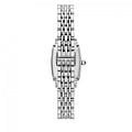 Женские кварцевые часы Emporio Armani из серии Gianni T-Bar сочетают классический дизайн и высокую надёжность. Корпус выполнен из нержавеющей стали серебристого цвета и защищён минеральным стекломМинеральное стеклоМинеральное стекло представляет собой искусственно выращенный минерал кварца. Такое стекло отличается особой устойчивостью к повреждениям и царапинам. Уступает по некоторым качествам сапфировому стеклу.. Циферблат прямоугольной формы в серебристом цвете оформлен римскими цифрами, придающими модели элегантный и утончённый вид. Браслет из нержавеющей стали фиксируется на застёжке «бабочка» с кнопкамиЗастёжка "бабочка"Такой вид застёжки дополняется предохранителями, помогающими избежать случайного раскрытия браслета. Обладают изящным исполнением. , обеспечивая удобство и надёжность ношения. Часы оснащены японским кварцевым механизмом, гарантирующим точное отсчёт времени. Водонепроницаемость составляет 30 WR, что позволяет использовать их в повседневных условиях, защищая от случайных брызг и капель дождя. Модель подчёркивает женственность и стиль, идеально дополняя как повседневный, так и вечерний образ.