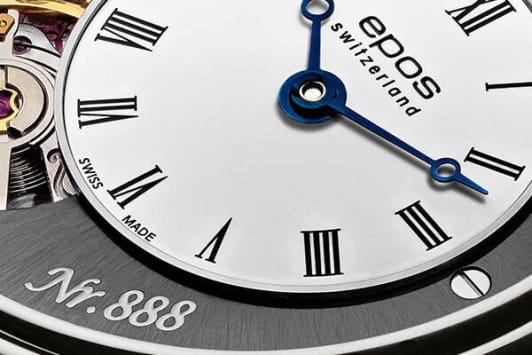 Мужские механические часы с ручным подзаводом Epos из коллекции Oeuvre d'art Limited Edition — это уникальное произведение часового искусства. Корпус диаметром 43,5 мм и толщиной 11 мм выполнен из нержавеющей стали 316L. Циферблат белого цвета с винтажным дизайном оформлен печатными римскими цифрами чёрного цвета. Циферблат защищён сапфировым стекломСапфировое стеклоПрочный и надёжный материал из кристалла сапфира синтетического происхождения, характеризующийся особой твёрдостью и устойчивостью к царапинам и повреждениям.. Часовая и минутная стрелки смещены от центра, а малая секундная стрелка пульсометра выведена на обратную сторону корпуса. Механизм — швейцарский калибр ETA Unitas 6497 с ручным подзаводом, частично скелетонизированный, с декорированными мостами, гравировкой и жемчужным зернением. Заводная головка — винтовая, формы «луковица». Модель оснащена стальным браслетом из литых звеньев в 7 рядов с застёжкой «бабочка» с кнопкамиЗастёжка "бабочка"Такой вид застёжки дополняется предохранителями, помогающими избежать случайного раскрытия браслета. Обладают изящным исполнением. . Функция пульсометра позволяет измерять частоту сердечных сокращений. Модель выпущена ограниченной серией — 888 экземпляров. Водонепроницаемость 50 м позволяет использовать часы в повседневных условиях. Гарантия — 24 месяца. Уникальный выбор для ценителя редких и эксклюзивных механизмов.