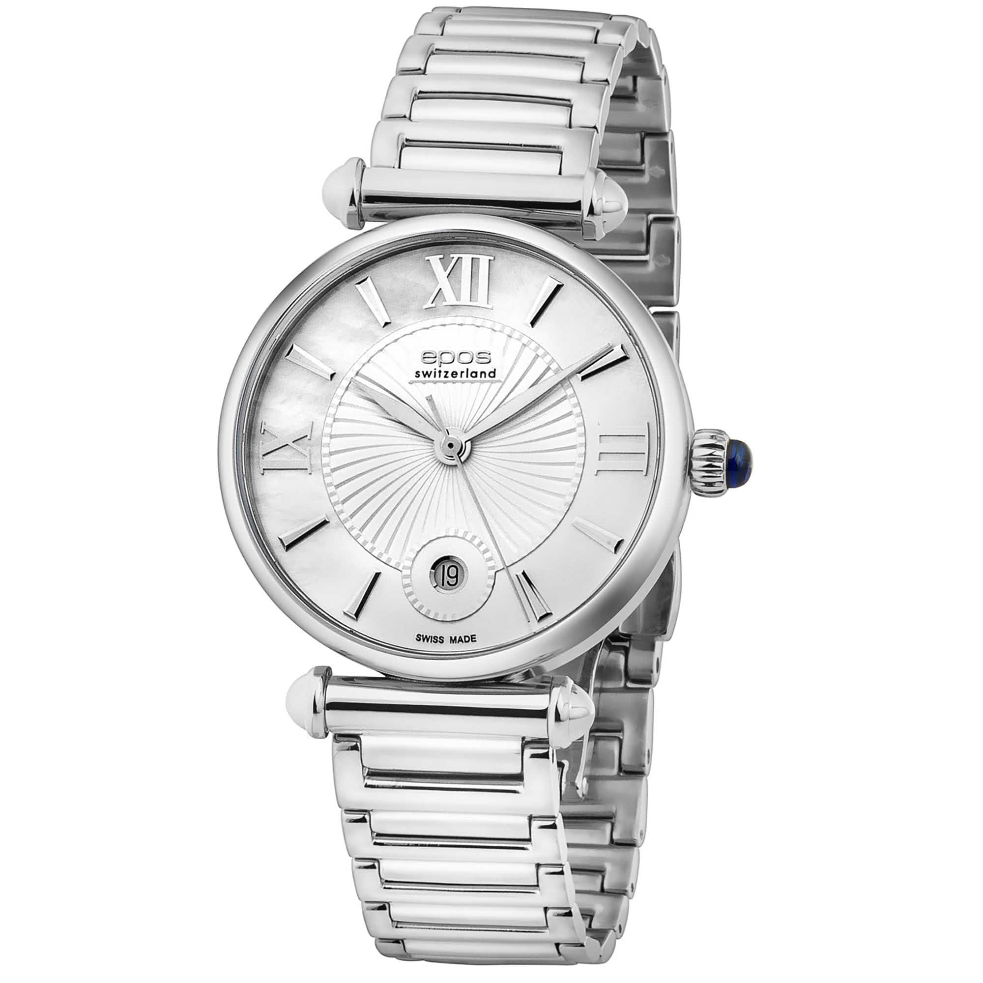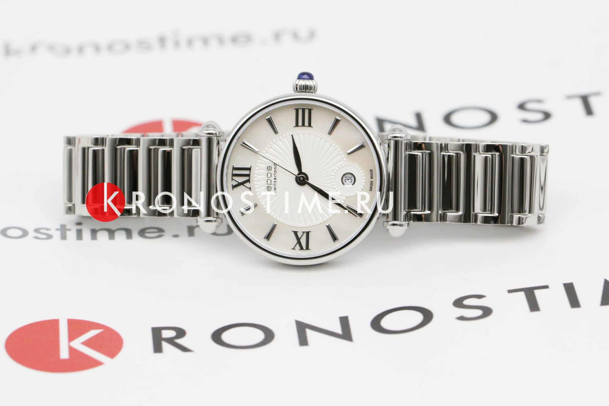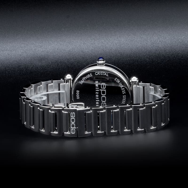 Женские швейцарские кварцевые часы Epos Quartz 8000.700.20.68.30, кварцевый механизм с высокой точностью. Сапфировое стеклоСапфировое стеклоПрочный и надёжный материал из кристалла сапфира синтетического происхождения, характеризующийся особой твёрдостью и устойчивостью к царапинам и повреждениям. устойчивое к появлению царапин, обладающее высокой прозрачностью. Класс водозащиты: 30 метров, позволит защитить корпус от случайных брызг или капель дождя. Корпус часов изготовлен из стали. Браслет с Застёжка "бабочка"Застёжка "бабочка"Такой вид застёжки дополняется предохранителями, помогающими избежать случайного раскрытия браслета. Обладают изящным исполнением. . Заводная головка украшена сапфиром в форме кабошона. Окошко даты находятся в положении 6 часов.