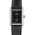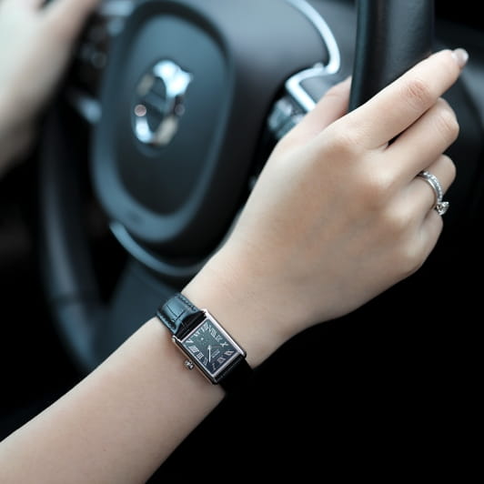 Epos 8002.702.20.25.15 — женская модель с утончённым классическим стилем и прямоугольным корпусом, выполненным из нержавеющей стали. Чёрный циферблат оформлен римскими индексами и утончённым узором «Clous de Paris», создающим игру света и подчёркивающим глубину дизайна. Защитную функцию выполняет сапфировое стеклоСапфировое стеклоПрочный и надёжный материал из кристалла сапфира синтетического происхождения, характеризующийся особой твёрдостью и устойчивостью к царапинам и повреждениям., стойкое к царапинам и сохраняющее прозрачность. В основе лежит швейцарский автоматический механизм, обеспечивающий стабильность и точность хода. Функции включают индикацию часов, минут и малую секундную шкалу, расположенную в позиции «6 часов». Часы дополнены кожаным ремешком классического чёрного цвета, который гармонично завершает строгий образ модели.