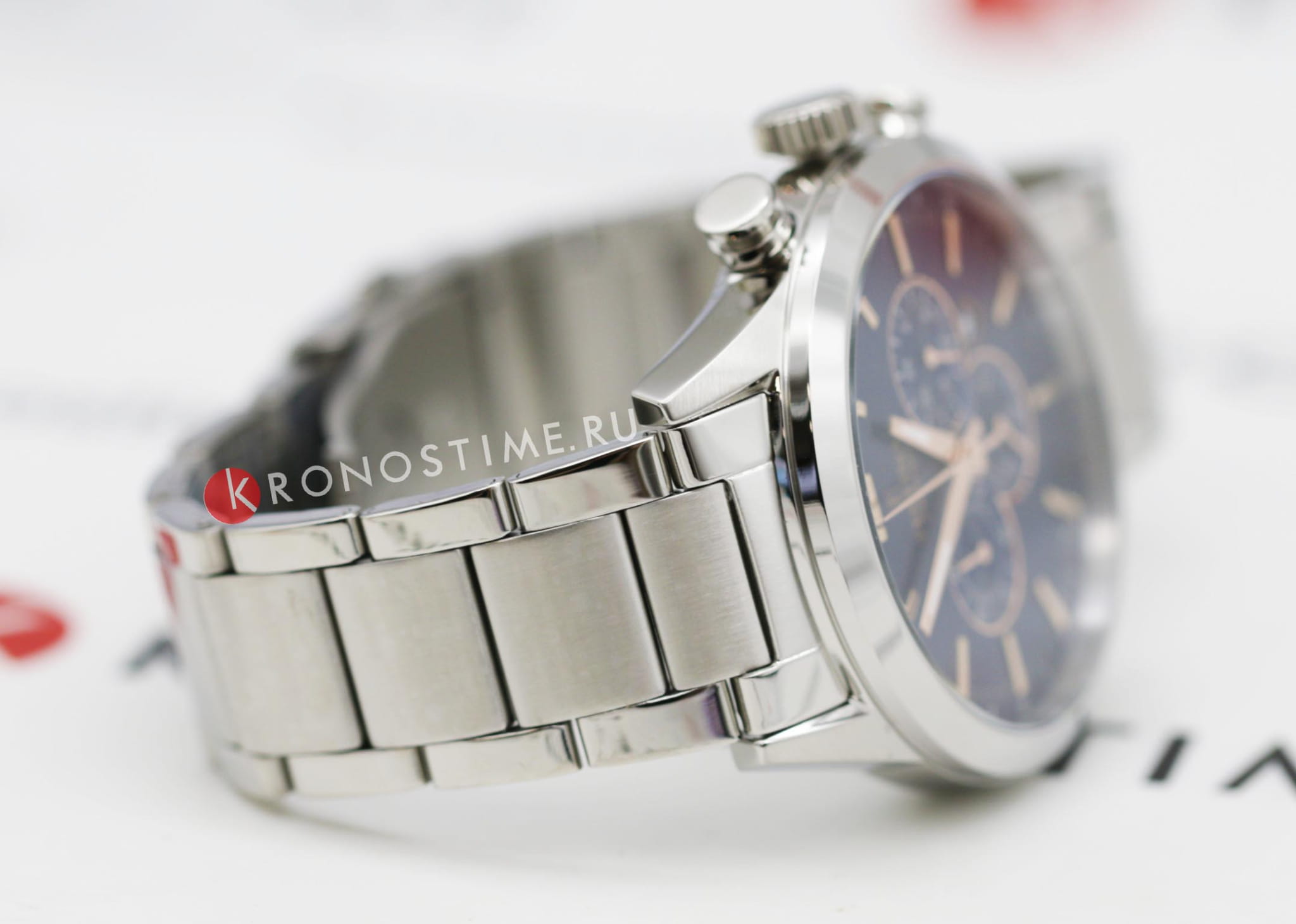 Эксклюзивный хронографХронографФункция позволяет измерять отрезки времени с особой точностью: часы, минуты, секунды. Верным признаком хронографа является наличие на циферблате 3 дополнительных окошек-счётчиков. с секундомеромСекундомерСекундоме́р — прибор, способный измерять интервалы времени с точностью до долей секунды., отличающийся продуманным дизайном и отделкой, придется по вкусу мужчинам, ценящим идеальное соотношение цены и качества.. Минеральное стеклоМинеральное стеклоМинеральное стекло представляет собой искусственно выращенный минерал кварца. Такое стекло отличается особой устойчивостью к повреждениям и царапинам. Уступает по некоторым качествам сапфировому стеклу. устойчивое к появлению царапин, обладающее высокой прозрачностью. Класс водозащиты: 50 метров, позволит защитить корпус от случайных брызг или капель дождя. Метки в виде штрихов. Стрелки и метки с нанесенным люминесцентным покрытиемЛюминесцентное покрытиеПозволяет считывать показания времени в темноте. Производители наносят на стрелки, часовые индексы, безель или поверхность циферблата светонакопительный состав, дающий холодное свечение.