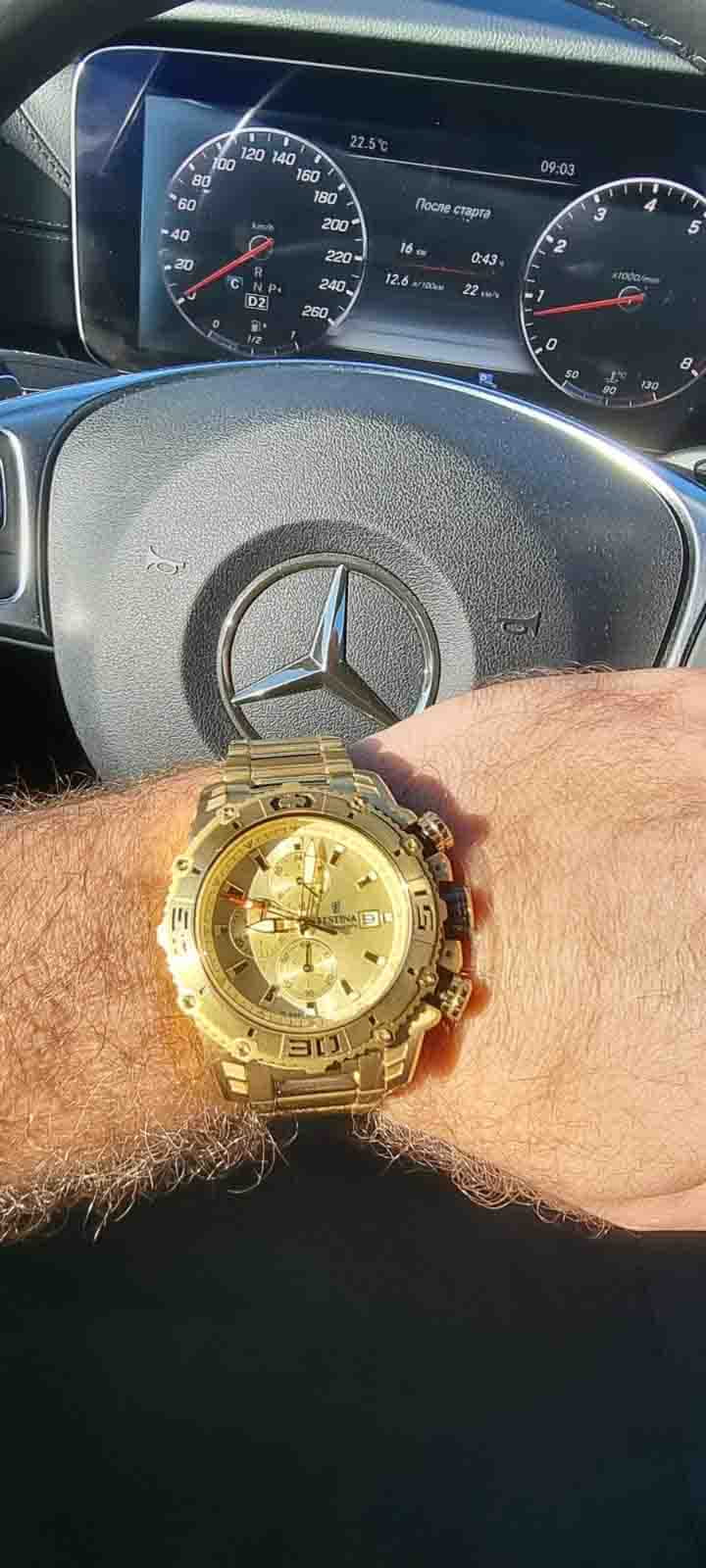Эксклюзивный хронографХронографФункция позволяет измерять отрезки времени с особой точностью: часы, минуты, секунды. Верным признаком хронографа является наличие на циферблате 3 дополнительных окошек-счётчиков. с секундомеромСекундомерСекундоме́р — прибор, способный измерять интервалы времени с точностью до долей секунды., отличающийся продуманным дизайном и отделкой, придется по вкусу мужчинам, ценящим идеальное соотношение цены и качества. Сапфировое стеклоСапфировое стеклоПрочный и надёжный материал из кристалла сапфира синтетического происхождения, характеризующийся особой твёрдостью и устойчивостью к царапинам и повреждениям. устойчивое к появлению царапин, обладающее высокой прозрачностью. Класс водозащиты: 100 метров, позволит защитить корпус от случайных брызг или капель дождя. Метки в виде штрихов. 12-ти и 24-х часовой формат времени. Стрелки и метки с нанесенным люминесцентным покрытиемЛюминесцентное покрытиеПозволяет считывать показания времени в темноте. Производители наносят на стрелки, часовые индексы, безель или поверхность циферблата светонакопительный состав, дающий холодное свечение.