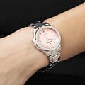 Яркий стиль и функциональность этих часов придутся по душе любой девушке. Кварцевый механизм с высокой точностью. Минеральное стеклоМинеральное стеклоМинеральное стекло представляет собой искусственно выращенный минерал кварца. Такое стекло отличается особой устойчивостью к повреждениям и царапинам. Уступает по некоторым качествам сапфировому стеклу. устойчивое к появлению царапин, обладающее высокой прозрачностью. Класс водозащиты: 50 метров, позволит защитить корпус от капель дождя. Корпус часов изготовлен из нержавеющей стали. Стальной браслет на раскладной застёжкеРаскладная застёжкаТакой тип застёжки используется только на браслетах из металла. Она никогда не раскрывается полностью, происходит разделение на 2 и более частей. Раскладывающая застёжка снизит вероятность потери часов к минимуму..