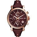 Роскошные американские женские наручные часы. Корпус часов выполнен из высокопрочной стали с полным IP покрытием цвета розового золота. Бордовый циферблат с позолоченными стрелками и индексами. Минеральное стекло, устойчивое к появлению царапин. Водонепроницаемость до 50 метров. Часы удерживаются на руке ремешком из натуральной кожи бордового цвета. Часы оснащены функцией хронографа.