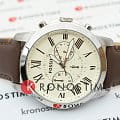Контрастный кремовый циферблат с накладными часовыми метками и окантовкой счетчиков хронографа.