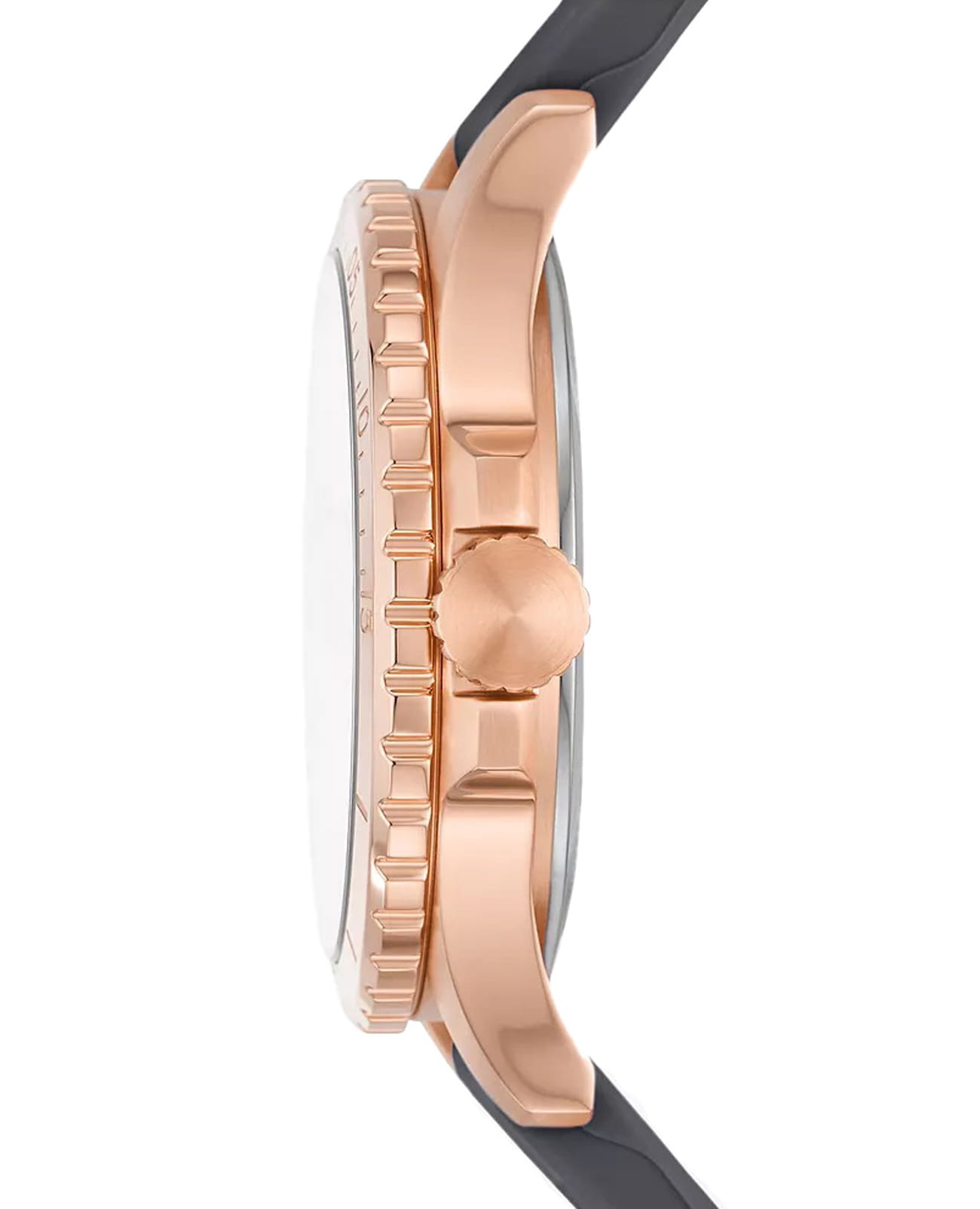 Женские американские часы с минеральным стекломМинеральное стеклоМинеральное стекло представляет собой искусственно выращенный минерал кварца. Такое стекло отличается особой устойчивостью к повреждениям и царапинам. Уступает по некоторым качествам сапфировому стеклу. Fossil Fossil FB-01 ES5293, кварцевый механизм с высокой точностью. Корпус часов изготовлен из нержавеющей стали. Метки в виде штрихов и точек с кристаллами. Окошко даты находится в положении 3 часа. Стрелки с люминесцентным покрытиемЛюминесцентное покрытиеПозволяет считывать показания времени в темноте. Производители наносят на стрелки, часовые индексы, безель или поверхность циферблата светонакопительный состав, дающий холодное свечение.. Рифленая заводная головка с защитой. Класс водозащиты: 100 метров, позволит плавать, нырять и заниматься другими водными видами спорта. Силиконовый ремешок на стандартной застежке.
