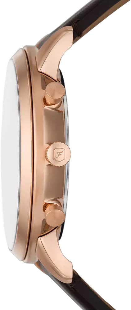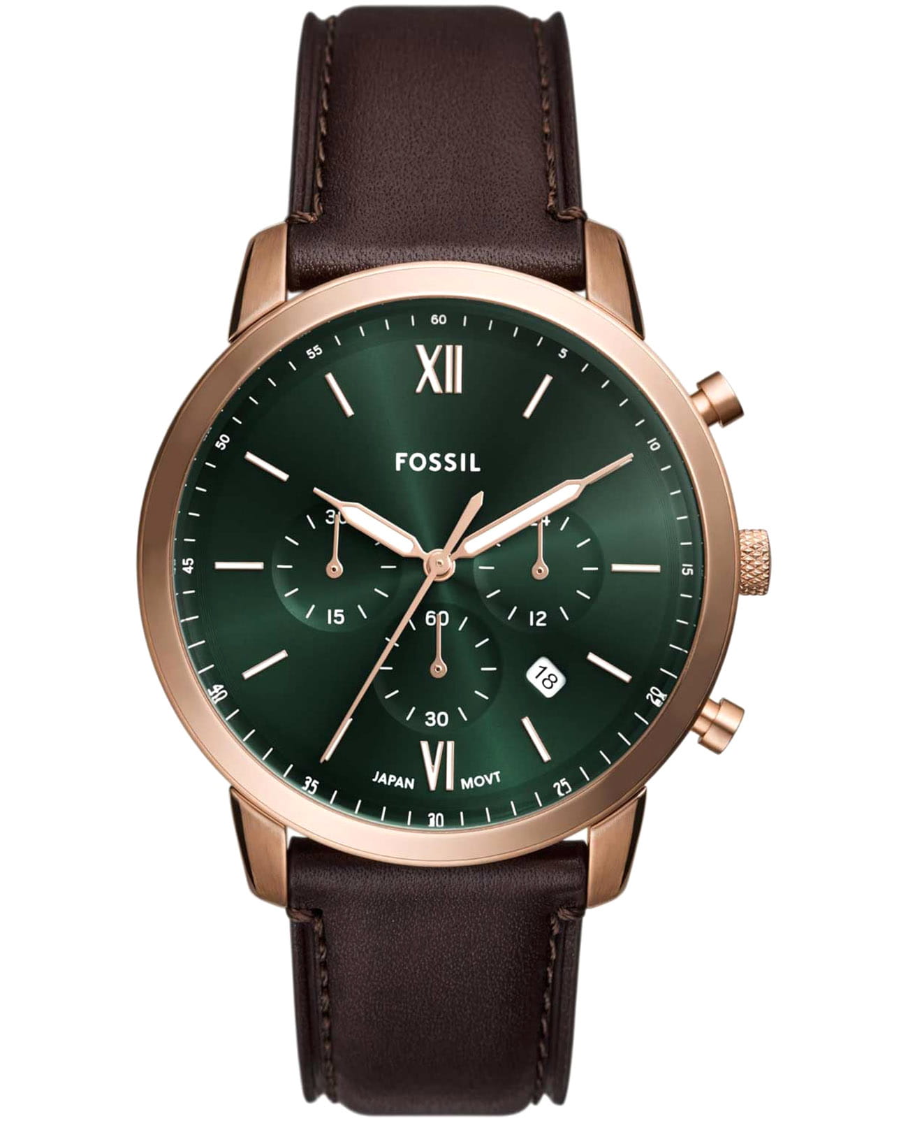 Часы Fossil Neutra FS6073 идеально подойдут для тех, кто ценит классический стиль, дополненный современными деталями, и ищет аксессуар, способный подчеркнуть их индивидуальность и элегантность. Эти мужские наручные часы-хронографХронографФункция позволяет измерять отрезки времени с особой точностью: часы, минуты, секунды. Верным признаком хронографа является наличие на циферблате 3 дополнительных окошек-счётчиков. с секундомеромСекундомерСекундоме́р — прибор, способный измерять интервалы времени с точностью до долей секунды. производятся в США и оснащены надежным кварцевым механизмом, который обеспечивает точность и стабильность в работе. Корпус из нержавеющей стали с IP-покрытиемIP-покрытиеМетод ионного напыления. Демонстрирует повышенную устойчивость к истиранию, окислению и химическим веществам. Под воздействием высокого давления и температуры около 1500°C молекулы металла надёжно соединяются с частицами корпуса часов., диаметром 44 мм гарантирует долговечность и придает часам стильный и современный вид. Циферблат, выполненный по технологии Sunray, создает эффект солнечных лучей, что добавляет глубину и изысканность дизайну. Метки в виде штрихов и римских цифр VI и XII придают циферблату классический акцент, а рифленая заводная головка облегчает настройку времени. Стрелки с люминесцентным покрытиемЛюминесцентное покрытиеПозволяет считывать показания времени в темноте. Производители наносят на стрелки, часовые индексы, безель или поверхность циферблата светонакопительный состав, дающий холодное свечение. позволяют легко считывать время даже в условиях низкой освещенности. Кожаный ремешок на стандартной застёжке обеспечивает комфортное ношение и надежную фиксацию на запястье. Водозащита уровня 50WR защищает механизм от случайных брызг, а минеральное стеклоМинеральное стеклоМинеральное стекло представляет собой искусственно выращенный минерал кварца. Такое стекло отличается особой устойчивостью к повреждениям и царапинам. Уступает по некоторым качествам сапфировому стеклу. оберегает циферблат от царапин и повреждений. 12-ти и 24-х часовой формат времени.
