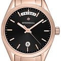 Мужские кварцевые часы с минеральным стекломМинеральное стеклоМинеральное стекло представляет собой искусственно выращенный минерал кварца. Такое стекло отличается особой устойчивостью к повреждениям и царапинам. Уступает по некоторым качествам сапфировому стеклу. Greenwich GW 351.40.31. Корпус часов изготовлен из стали PVD-покрытиемPVDУльтратонкое покрытие наносится в технике вакуумного напыления, сочетает в себе нитрид титана особой прочности со слоем золота или оксида хрома. Несёт в себе декоративную или защитную функцию.. Стрелки с люминесцентным покрытиемЛюминесцентное покрытиеПозволяет считывать показания времени в темноте. Производители наносят на стрелки, часовые индексы, безель или поверхность циферблата светонакопительный состав, дающий холодное свечение.. Класс водозащиты: 50 метров, позволит защитить корпус от случайных брызг или капель дождя. Стальной браслет на раскладной застёжкеРаскладная застёжкаТакой тип застёжки используется только на браслетах из металла. Она никогда не раскрывается полностью, происходит разделение на 2 и более частей. Раскладывающая застёжка снизит вероятность потери часов к минимуму. с PVD-покрытиемPVDУльтратонкое покрытие наносится в технике вакуумного напыления, сочетает в себе нитрид титана особой прочности со слоем золота или оксида хрома. Несёт в себе декоративную или защитную функцию..Окошко даты находится в положении 6 часа.