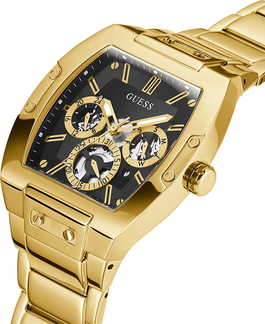 Мужские наручные часы Guess Trend GW0456G1 с минеральным стекломМинеральное стеклоМинеральное стекло представляет собой искусственно выращенный минерал кварца. Такое стекло отличается особой устойчивостью к повреждениям и царапинам. Уступает по некоторым качествам сапфировому стеклу., кварцевый механизм с высокой точностью. Класс водозащиты: 50 метров, позволит защитить корпус от случайных брызг или капель дождя. Корпус часов изготовлен из стали с IP-покрытиемIP-покрытиеМетод ионного напыления. Демонстрирует повышенную устойчивость к истиранию, окислению и химическим веществам. Под воздействием высокого давления и температуры около 1500°C молекулы металла надёжно соединяются с частицами корпуса часов.. Браслет с раскладной застёжкойРаскладная застёжкаТакой тип застёжки используется только на браслетах из металла. Она никогда не раскрывается полностью, происходит разделение на 2 и более частей. Раскладывающая застёжка снизит вероятность потери часов к минимуму.