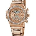 Женские наручные часы Guess Sport Steel GW0552L3 с минеральным стекломМинеральное стеклоМинеральное стекло представляет собой искусственно выращенный минерал кварца. Такое стекло отличается особой устойчивостью к повреждениям и царапинам. Уступает по некоторым качествам сапфировому стеклу., кварцевый механизм с высокой точностью. 24-х часовой формат времени, число и день недели отображаются на отдельных циферблатах. Стрелки и метки с люминесцентным покрытиемЛюминесцентное покрытиеПозволяет считывать показания времени в темноте. Производители наносят на стрелки, часовые индексы, безель или поверхность циферблата светонакопительный состав, дающий холодное свечение.. Класс водозащиты: 50 метров, позволит защитить корпус от случайных брызг или капель дождя. Корпус часов и браслет изготовлены из стали с IP-покрытиемIP-покрытиеМетод ионного напыления. Демонстрирует повышенную устойчивость к истиранию, окислению и химическим веществам. Под воздействием высокого давления и температуры около 1500°C молекулы металла надёжно соединяются с частицами корпуса часов.. БезельБезельВнешний ободок, закрепляющий стекло. В спортивных часах так называется поворотное кольцо с делениями на циферблате, выполняет роль таймера – замеряет отрезки времени на шкале. Неподвижный безель – элемент декора. Однонаправленно вращающийся безель на дайверских часах позволяет фиксировать моменты погружения и выныривания на поверхность. инкрустирован кристаллами. Браслет с раскладной застёжкойРаскладная застёжкаТакой тип застёжки используется только на браслетах из металла. Она никогда не раскрывается полностью, происходит разделение на 2 и более частей. Раскладывающая застёжка снизит вероятность потери часов к минимуму..