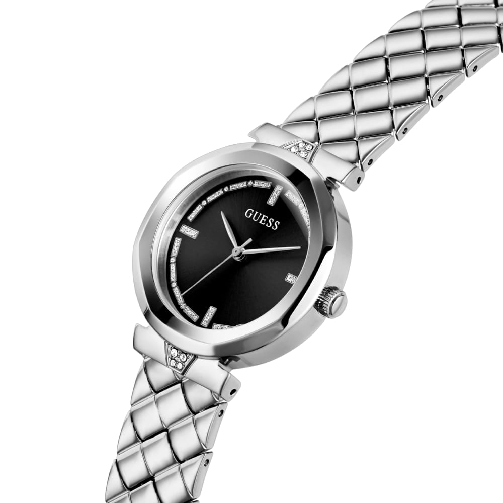 Женские наручные часы с минеральным стекломМинеральное стеклоМинеральное стекло представляет собой искусственно выращенный минерал кварца. Такое стекло отличается особой устойчивостью к повреждениям и царапинам. Уступает по некоторым качествам сапфировому стеклу. Guess Tessa GW0613L1, кварцевый механизм с высокой точностью. Класс водозащиты: 30 метров, позволит защитить корпус от случайных брызг или капель дождя. Корпус часов изготовлен из стали. Стальной браслет на раскладной застёжкеРаскладная застёжкаТакой тип застёжки используется только на браслетах из металла. Она никогда не раскрывается полностью, происходит разделение на 2 и более частей. Раскладывающая застёжка снизит вероятность потери часов к минимуму..