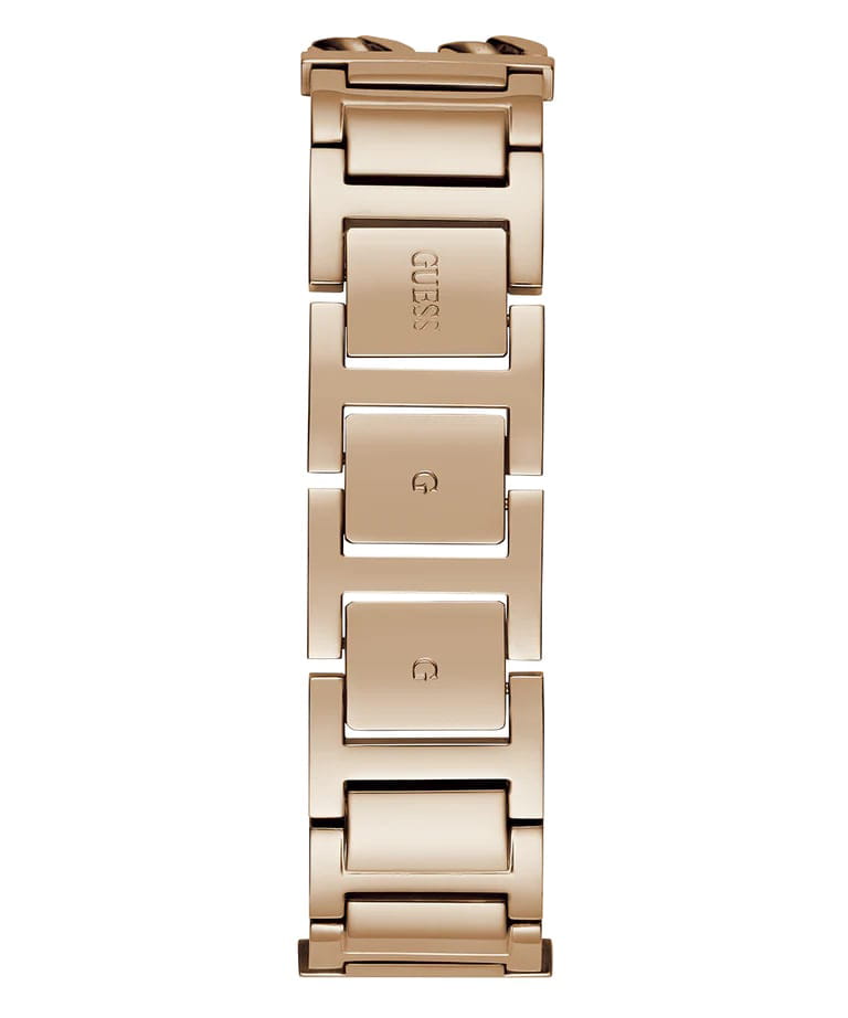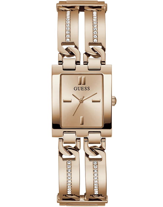 Женские наручные часы Guess GW0668L3 с минеральным стекломМинеральное стеклоМинеральное стекло представляет собой искусственно выращенный минерал кварца. Такое стекло отличается особой устойчивостью к повреждениям и царапинам. Уступает по некоторым качествам сапфировому стеклу., кварцевый механизм с высокой точностью. Класс водозащиты: 30 метров, позволит защитить корпус от случайных брызг или капель дождя. Корпус часов изготовлен из стали с IP-покрытиемIP-покрытиеМетод ионного напыления. Демонстрирует повышенную устойчивость к истиранию, окислению и химическим веществам. Под воздействием высокого давления и температуры около 1500°C молекулы металла надёжно соединяются с частицами корпуса часов.. Метки в виде штрихов. Рифленая заводная головка.